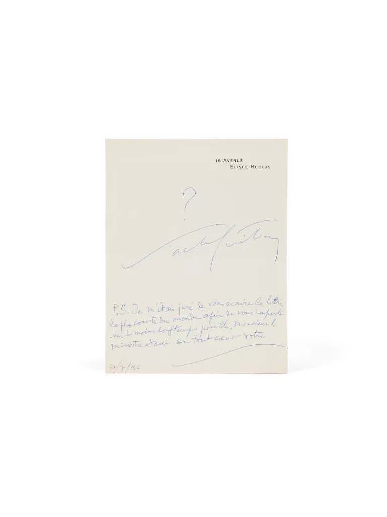 [Paris], 18 avenue Elisée-Reclus, 10 juillet 1956.« Votre dette est réduite de 17 millions »Vendu