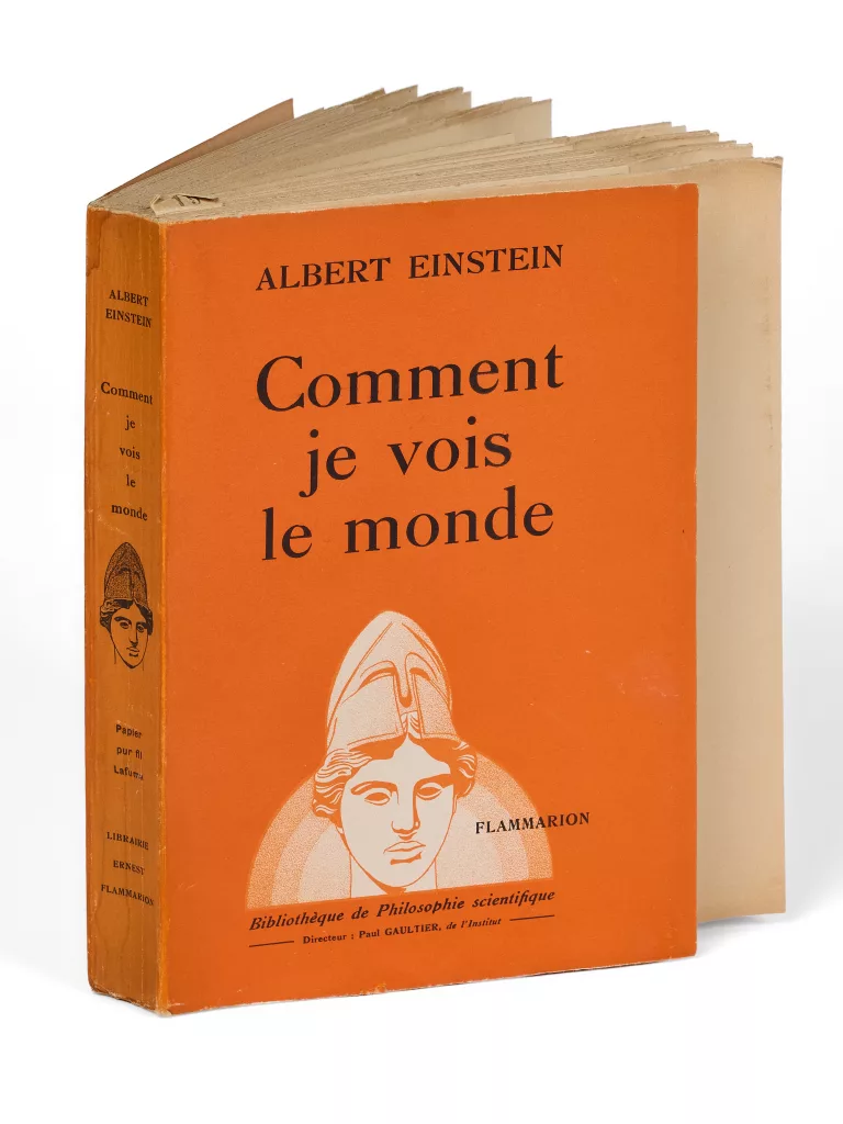 Paris, Flammarion, coll. « Bibliothèque de philosophie scientifique », (novembre) 1938.Édition originale de la traduction française, par Maurice Solovine. Un des 20 premiers exemplaires sur vélin de Rives.Vendu