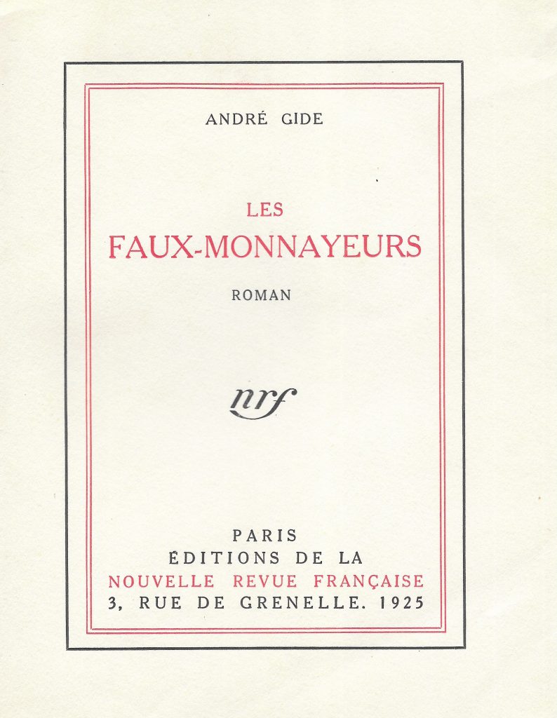 Paris, Editions de la Nouvelle Revue Française, (28 novembre) 1925.Les Faux-Monnayeurs, c'est « le roman se regardant en train de se faire » (Sarraute), mais c'est aussi le roman en crise : pour mieux saper les fondements du roman à l'ancienne, Gide se lance, trois ans après la fin de la Grande Guerre dans l'écriture du roman des romans, qui contiendrait toute l'histoire du…Vendu