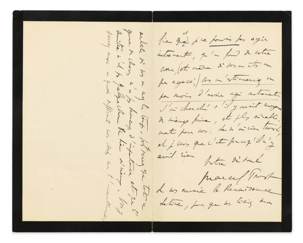 S.l.n.d. [mai 1905].Ami depuis 1902 de Léon Radziwill, qu'il appelle Loche, Proust lui envoie le 28 février 1905 une véritable lettre de dépit ("je ne veux plus vous voir"), tout en espérant quand même être invité à son mariage avec Claude de Gramont, qui doit avoir lieu le 27 juin 1905. Loche ne l'invitera pas et lui…Vendu