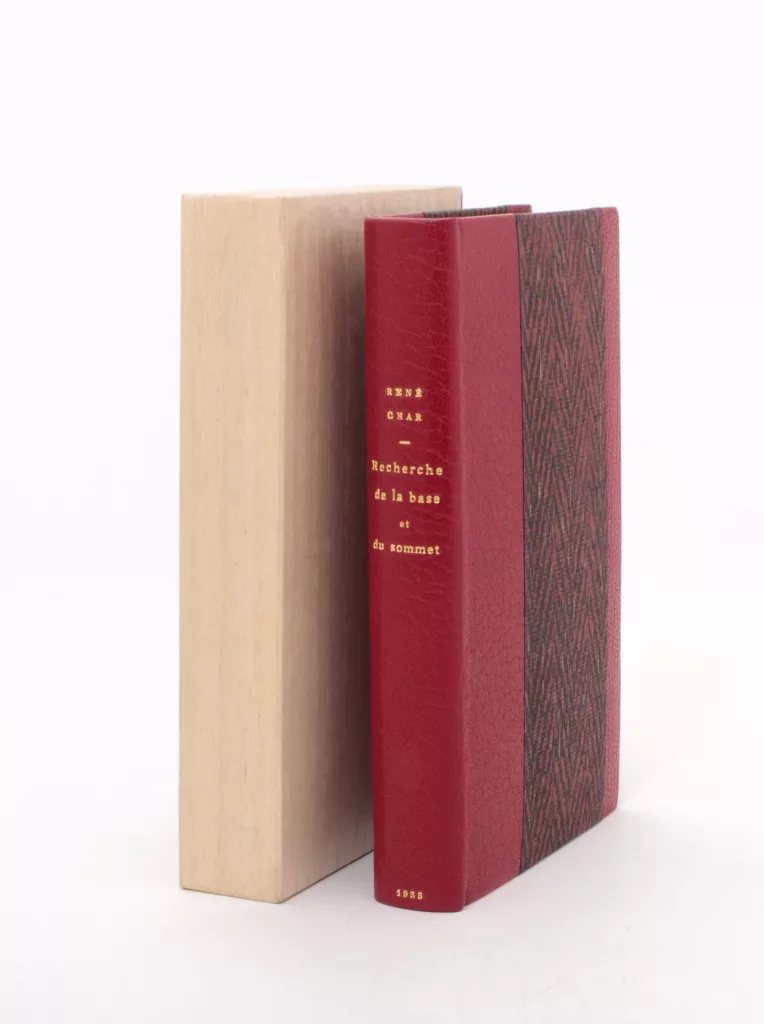 Genève, Edwin Engelberts, (mai) 1965.Édition originale.Tirage unique à 100 exemplaires (n° 2).Ils contiennent, en fin, une photographie originale d'Henriette Grindat : un portrait de Camus, pris dans le Vaucluse en 1952.Exemplaire offert par René Char à sa compagne du moment, Maryse Lafont.Vendu