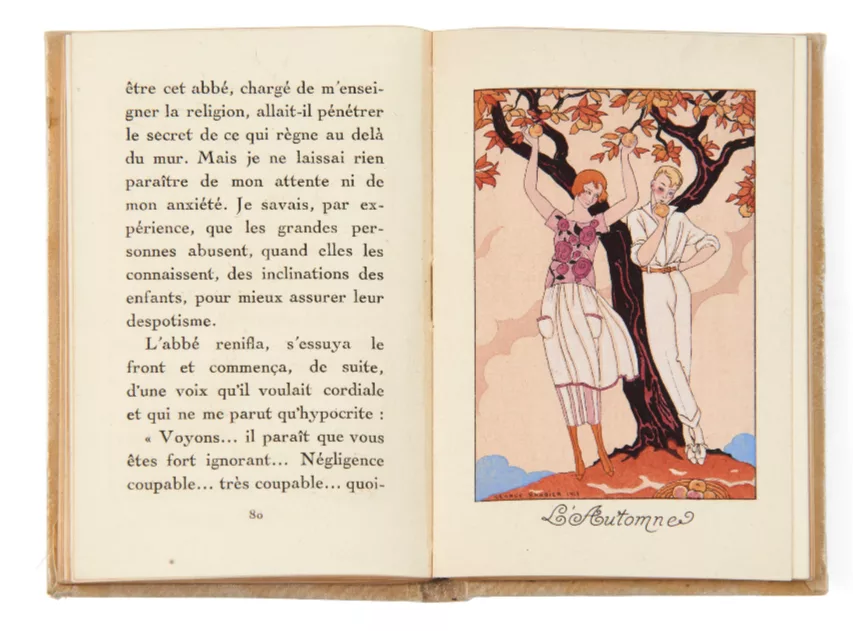 Né à Nantes le 16 octobre 1882, Georges Barbier s'impose comme l'une des figures majeures du dessin Art déco, à la croisée de la mode, de l'illustration et du costume de théâtre. Sa maîtrise de la gouache et de l'aquarelle lui vaut d'être choisi par le libraire Jules Meynial pour illustrer La Guirlande des mois, une série d'almanachs de grand luxe publiés à partir de 1917, aux côtés de textes signés Anna de Noailles, Henri de Régnier ou Francis de Miomandre. Il meurt à Paris le 16 mars 1932, laissant une œuvre d'une élégance formelle qui reste indissociable de l'esthétique des années folles.