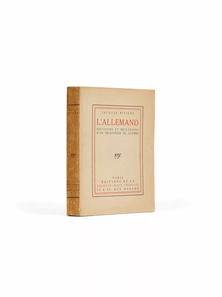 Né à Bordeaux le 15 juillet 1886, Jacques Rivière est capturé dès le 24 août 1914 au combat d'Éton et passe trois ans en captivité en Allemagne — évadé, repris, puis interné en Suisse alémanique — avant de rentrer en France avec la matière d'un portrait de l'ennemi qu'il mettra des années à oser publier. Ami d'Alain-Fournier, dont il devient le beau-frère, il s'impose à son retour comme l'une des figures centrales de la vie littéraire française en prenant la direction de La Nouvelle Revue française, qu'il anime de 1919 jusqu'à sa mort à Paris le 14 février 1925.