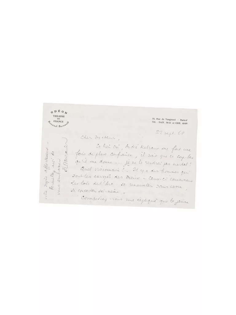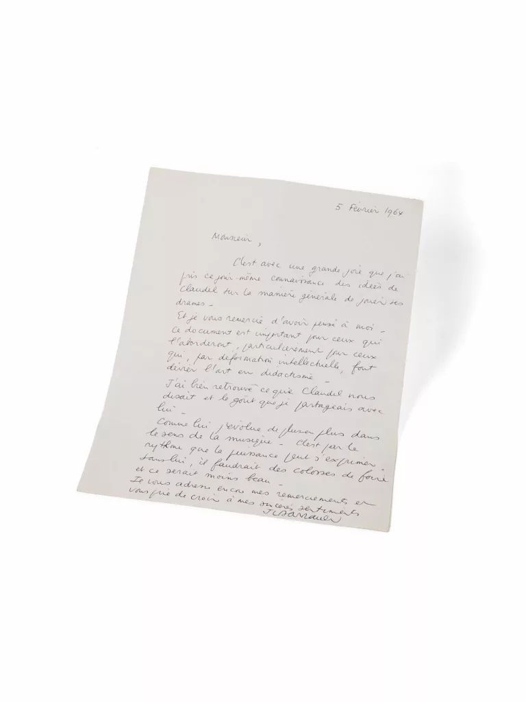 S.l., 5 février 1964.Barrault partage les conceptions de ClaudelVendu