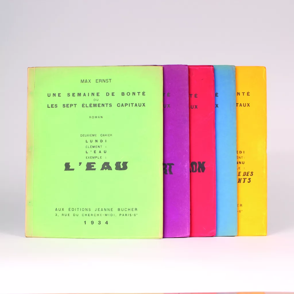 Paris, Éditions Jeanne Bucher, 1934.De tous les moyens que Max Ernst a utilisés pour s'exprimer, le collage est sans doute le seul qui doive au moins autant à Dada qu'au Surréalisme. Ne tentez pas d'hypothèses hasardeuses sur le sens qu'a voulu donner l'auteur de l'oeuvre vraisemblablement la plus protéiforme du Surréalisme à ces « éléments » et à leurs…Vendu
