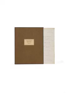 Nouvelle(1) Jusqu'à(1) Le Silence de la mer et 17 autres titres clandestins(1) Lettres à Dominique Rolin (1958-1980)(1) Le Mot de Cambronne(1) Un animal doué de raison(1) La Fièvre(1) Le Souvenir d'avoir chanté(1) Notes diverses, et Quelques détails sur Naples(1) Comme avec une femme(1) Les Jeux sauvages(1) Sur le jadis(1) Un hosanna sans fin(1) Les Dimanches de Jean Dézert(1) Voyage à Rodrigues(1) De guerre lasse(1) Élégies majeures suivi de Dialogue sur la poésie francophone(1) L'Immortalité(1) Le Procès-verbal(1) Recours au poème. Chants du captif(1) Comme dans un miroir(1) Images de l'homme immobile(1) They Shall Not Have Me(1) Lettre autographe signée à Pierre-Victor Stock(1) Le Grand Écart(1) « Un avocat peut dire encore plus que Baudelaire qu'il a plus de souvenirs que s'il avait 1 000 ans... »(1) L'Insomnie(1) Le Silence de la mer et 25 autres titres dont 23 clandestins(1) Les Temps sauvages(1) Allégories(1) Énigme(1) Le Petit Pierre(1) L'Art du roman(1) Les Testaments trahis(1) La Valse aux adieux(1) Les sept mariages d'Edgar et Ludmilla(1) Chambord-des-songes(1) C'était bien(1) Dessin de mode(1) Dessin de mode(1) Quinze causeries en Chine(1) La Nuit du coeur(1) L'Enfant d'Ingolstadt(1) Ghismonda da Salerno, Tragedia(1) Trattato di sana politica sociale, ossiano Le Regole di ben vivere.(1) Novelle inedite(1) Vita dei santi coniugi Zoe ed Espera, e figli loro Ciriaco e Teodulo(1) Viaggio al Tempio di Possagno, novelle(1) Legazione si Spagna di Francesco Guicciardini(1) La Pratica del distillatore e confettiere Italiano(1) Un sollievo nella malinconia(1) Poesie di Ieronimo Savonarola(1) Rime(1) Correspondance (1945 - 1959)(1) Lettre autographe signée [à Daragnès](1) Numquid et tu ?...(1) Que ma joie demeure(1) La Grande Beune(1) Sérotonine(1) Heath's Book of Beauty(1) [La Grande Peur des bien-pensants](1) Pierre(1) Après vous s'il en reste, Monsieur le Président(1) Les Enfants humiliés(1) Foutaises(1) Scene di vita privata(1) Cahiers pour une morale. Les Carnets de la drôle de guerre.(1) abc. Récital 1963(1) Le Roman de Quat'sous(1) La Joie(1) L'Église(1) Appels aux Allemands(1) La Bible d'Amiens(1) La Paille et le Grain. Chronique(1) Les Souterrains(1) Ma part de vérité(1) Frère Océan(1) « L'auberge d'Ingrannes » [Le temps d'Anaïs](1) L'Origine du monde(1) Rimbaud le fils(1) Mot autographe signé(1) Z(1) Portrait photographique(1) Le Silence de la mer(1) L'Hôtel du Nord(1) Un jour je m'en irai sans en avoir tout dit(1) En route(1) Plain-chant(1) L'Été(1) Trois villes saintes(1) L'Inconnue du 17 mars(1) Les Aérostats(1) [Sous le soleil de Satan](1) Le Blasphème de Catulle Mendès(1) Candy(1) Praxinoscope(1) Maillot jaune(1) Portrait signé en pied, signé(1) Le célèbre gardien de but en pleine parade(1) Photographie en couleurs du joueur avec la Coupe Jules Rimet(1) Drapeau olympique(1) Photographies originales pour la collection Printemps-Été 1978 : maquette originale(1) Mode d'emploi(1) Le Procès-verbal(1) Lettre à une journaliste(1) Médaille des Jeux olympiques 1924.(1) Finale de l'Euro 84(1) Le Nom de la rose(1) La Rôtisserie de la Reine Pédauque(1) Pierre Nozière(1) Frère Joconde(1) Les Contes de Jacques Tournebroche(1) Balthasar - Thaïs - L'Étui de nacre(1) Jocaste et Le Chat maigre(1) Sur la pierre blanche(1) Jocaste et Le Chat maigre.