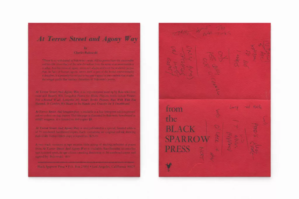[Los Angeles, Black Sparrow, 1968].Avec note autographe de Bukowski200 €