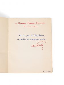 Livres et Documents Spécialisée en éditions originales littéraires XIXe -XXe dans des exemplaires singuliers par leur provenance, reliure ou autre rareté bibliophilique, la librairie explore aussi les domaines que frôle la littérature. Tous nos livres ne sont pas en ligne, mais ce choix reflète nos rayonnages. Contactez-nous pour trouver le livre ou l’exemplaire que vous cherchez.