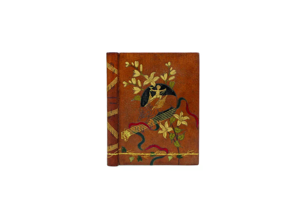 [Paris, Magnier, 1887].Etonnante reliure mosaïquée, en peau de truie1 000 €