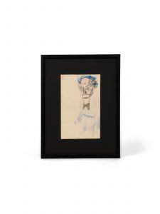 Grand dessin original : remarquable autoportrait au crayon noir, bleu et rouge.