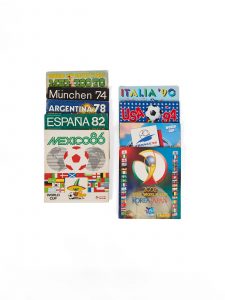 Collection complète des albums de vignettes autocollantes Panini, édités à l’occasion des différentes Coupe du monde de football, organisées par la FIFA, auquel il est joint le premier album international de « vignettes à coller » pour l’édition de 1970.