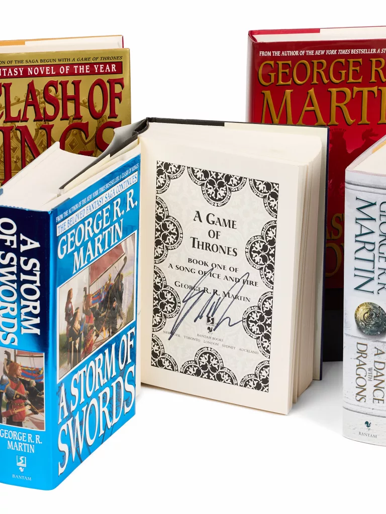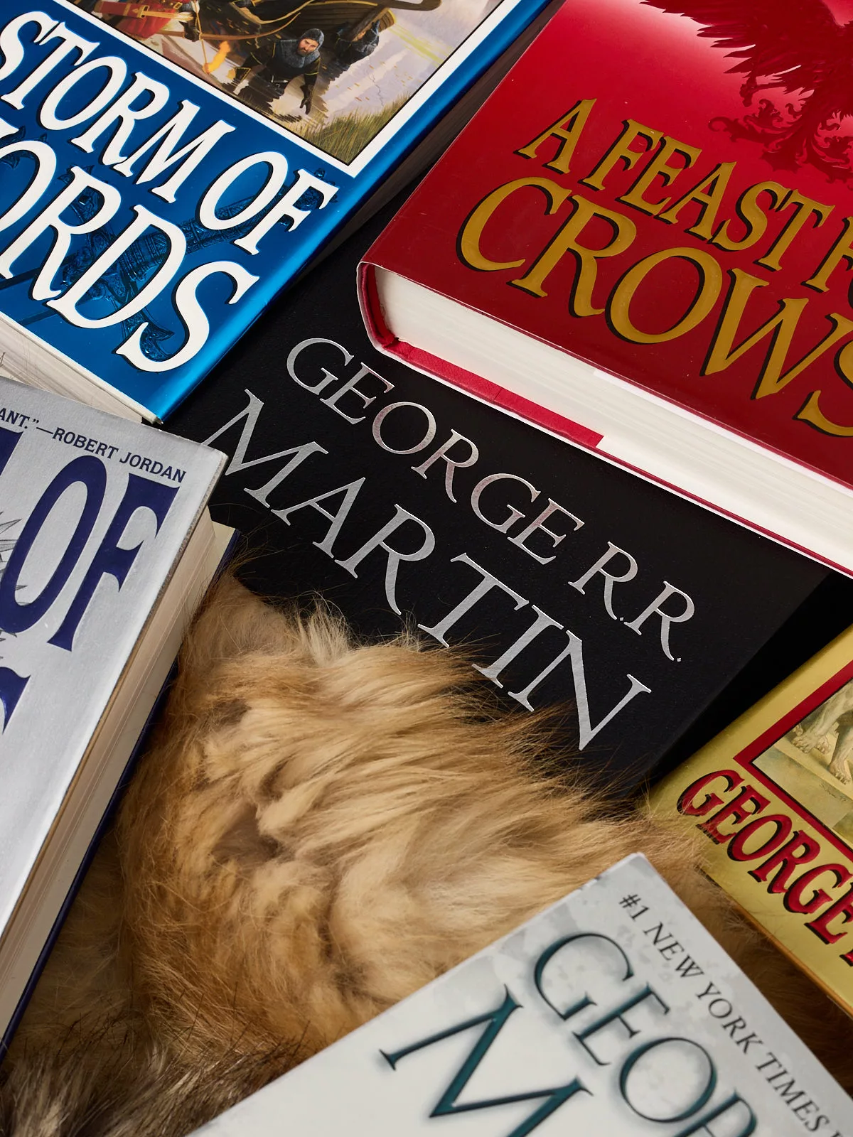 Né en 1948 à Bayonne (attention, celui du New Jersey !), le « Tolkien américain » ainsi qu’il est aujourd’hui surnommé, entame la rédaction au début des années 1990 d’un cycle de roman fantasy qu’il nomme A Song of Ice and Fire : le premier volume, A Game of Thrones est publié en 1996 ; il sera suivi de quatre autres volumes, publiés entre 1999 et 2011.
