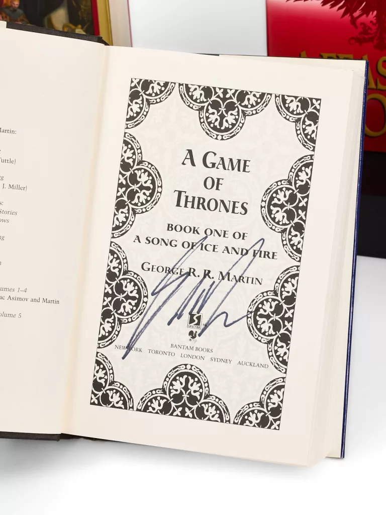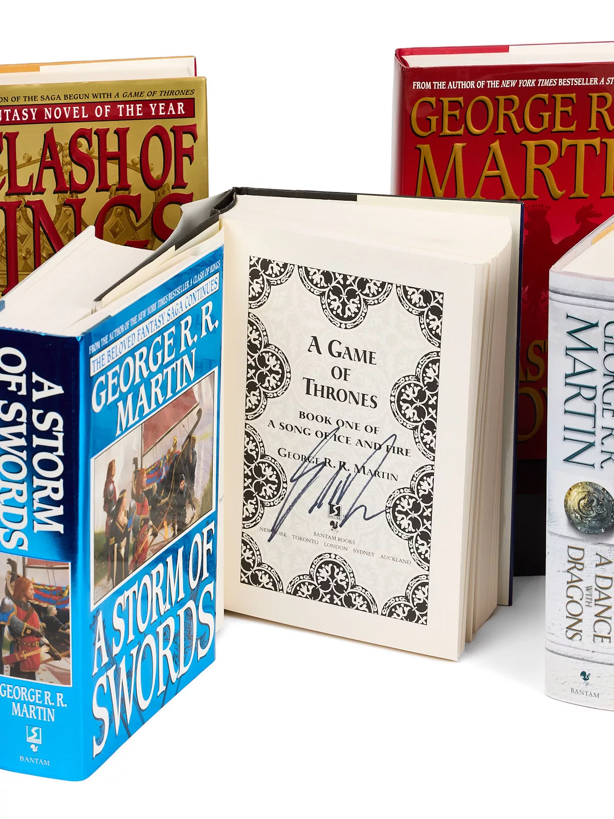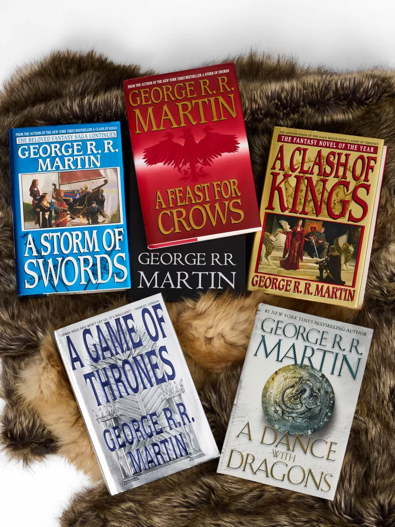 Série complète, composée de A Game of Thrones, A Clash of Kings, A Storm of Swords, A Feast for Crows, A Dance with Dragons, sous les jaquettes originales illustrées par Tom Hallman (vol. 1), Stephen Youll (vol. 2 à 4) et Larry Rostant (vol. 5) - elles seront par la suite uniformisées et refaites pour les éditions ultérieures.