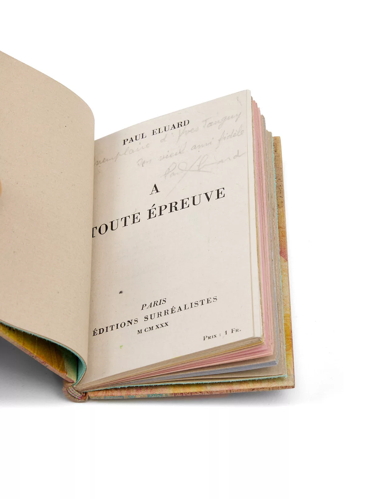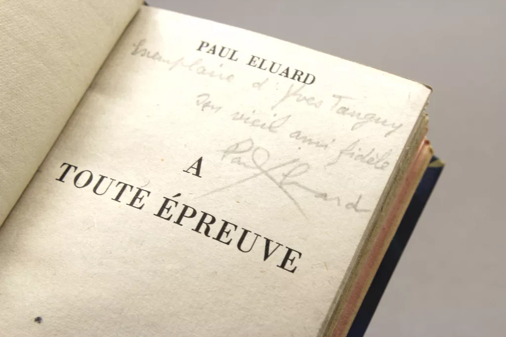 Envoi signé : « Exemplaire d'Yves Tanguy, son vieil ami fidèle, Paul Éluard ».