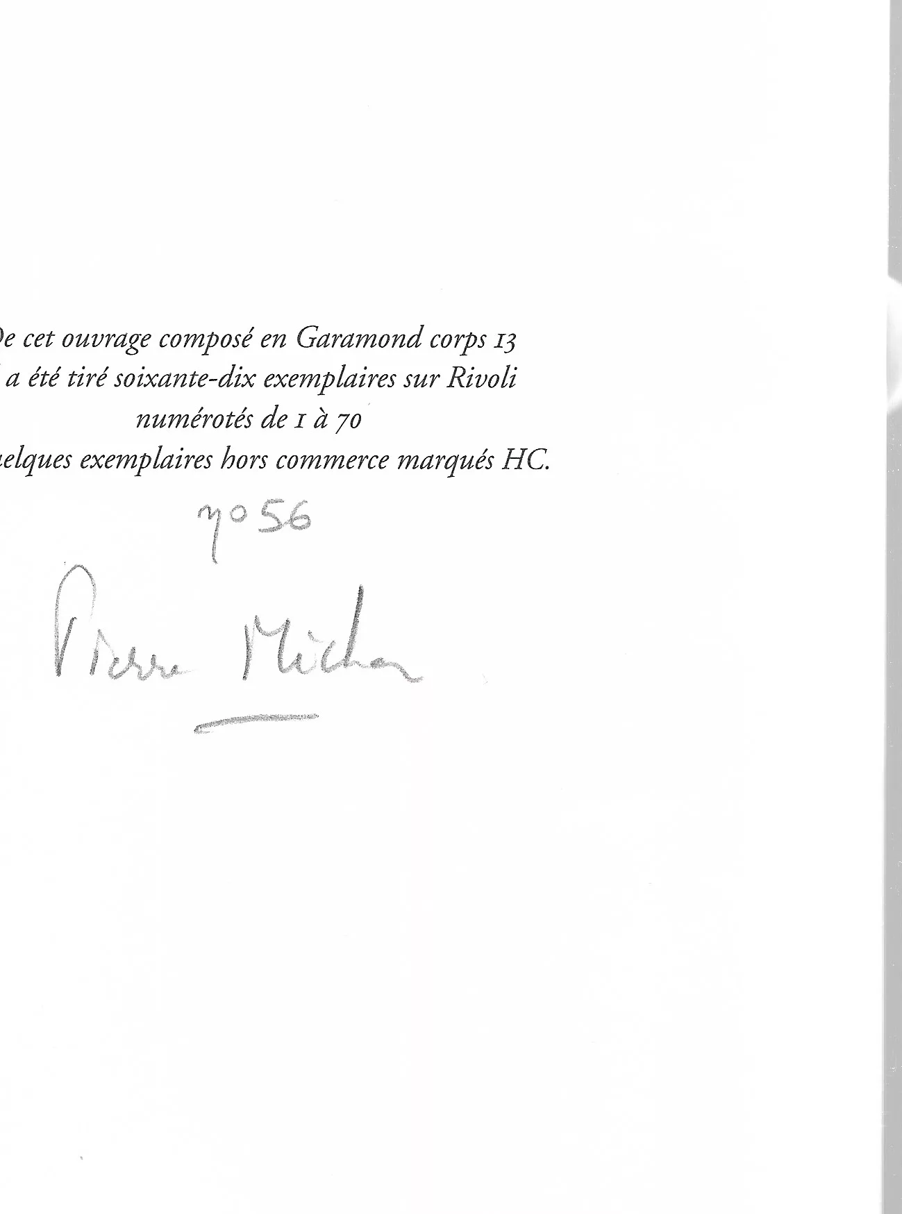 Un des 70 premiers exemplaires sur vélin Rivoli (n° 56), signé.