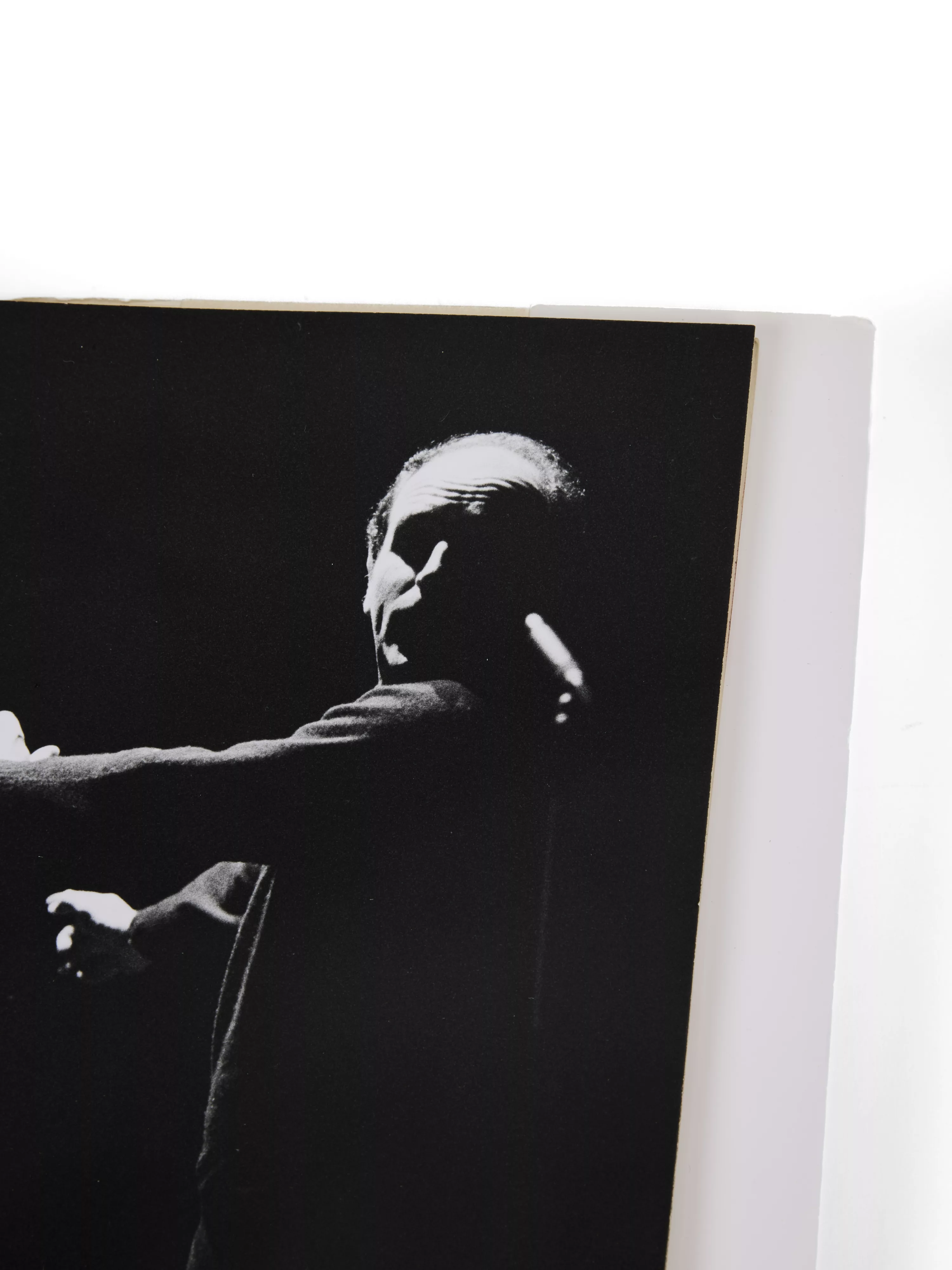Cinéaste de formation, Jean-Pierre Sudre développa une oeuvre de photographe d’art, très en marge des tendances de son époque et d’une rare poésie. Lors de sa première rencontre avec Léo Ferré il réalise une série de photos du chanteur dans sa propriété de Saint-Coulomb en Ille-et-Vilaine, les clichés sont utilisés pour les visuels de l’album La Langue française, qui paraît à la rentrée de septembre 1962. Pour Sudre c’est aussi l’année de sa première exposition parisienne, sous l’égide de Brassaï qui en préface le catalogue. À l’automne Ferré lui fait à nouveau appel pour couvrir les répétitions à l’ABC. Il réalise alors cette série de clichés pris sur le vif des répétitions.