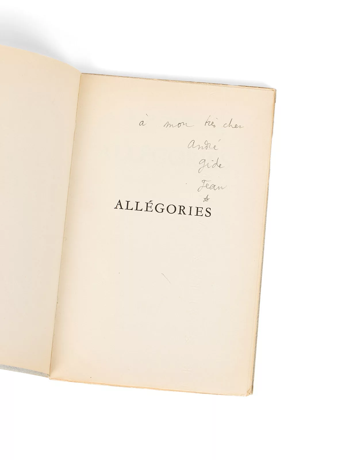 Envoi signé : « à mon très cher André Gide, Jean ».