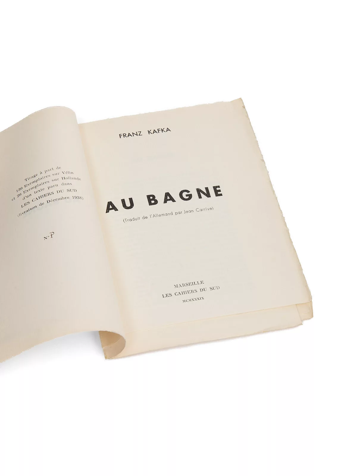 Cette traduction française parue dans Les Cahiers du Sud est la première, antérieure à celles de Jean Starobinski (Egloff, en 1945) et d’Alexandre Vialatte (Gallimard, Le Monde Entier en 1948), toutes deux sous le titre de La colonie pénitentiaire [In der Strafkolonie], titre sous lequel il est passé à la postérité.
