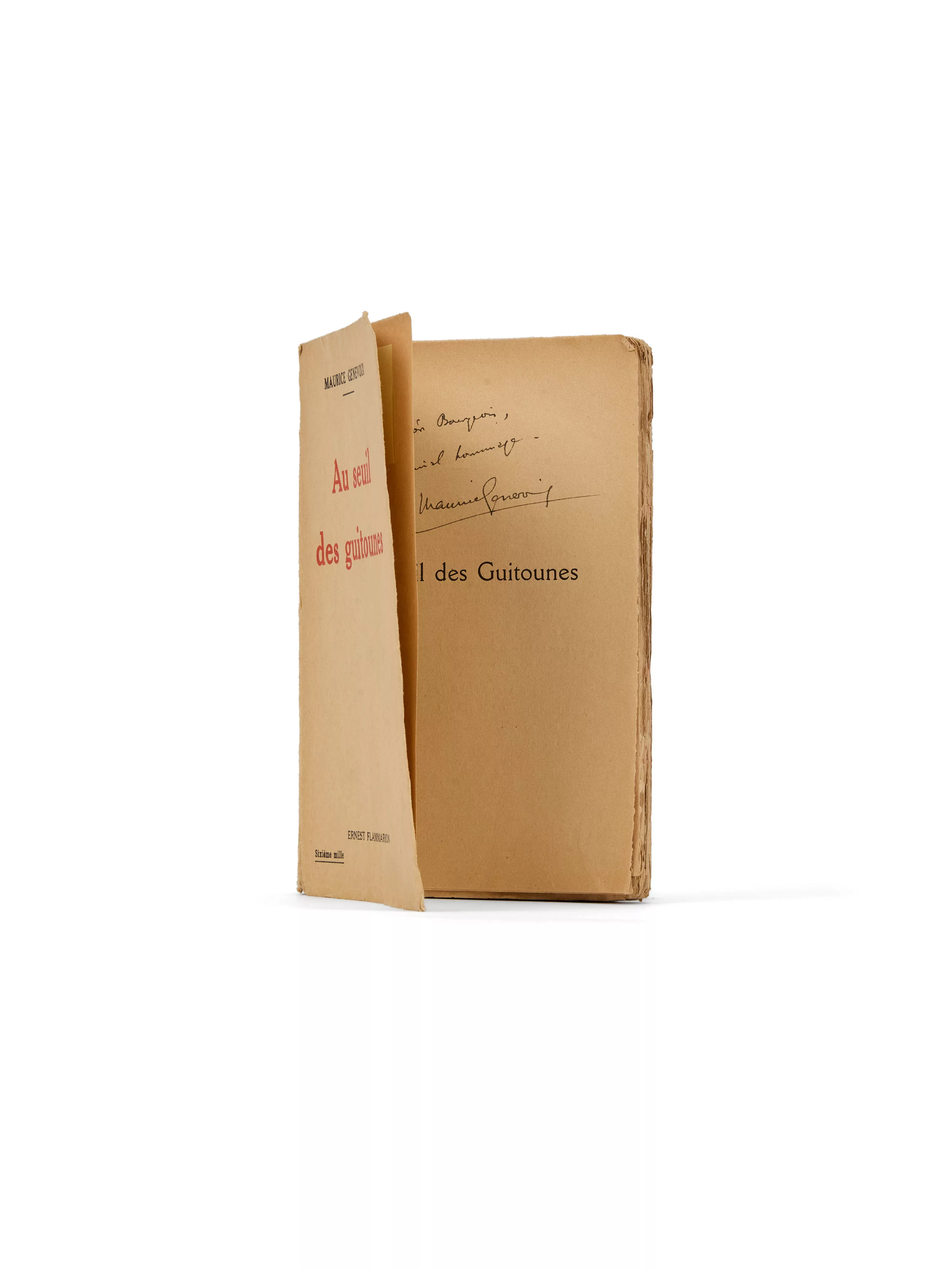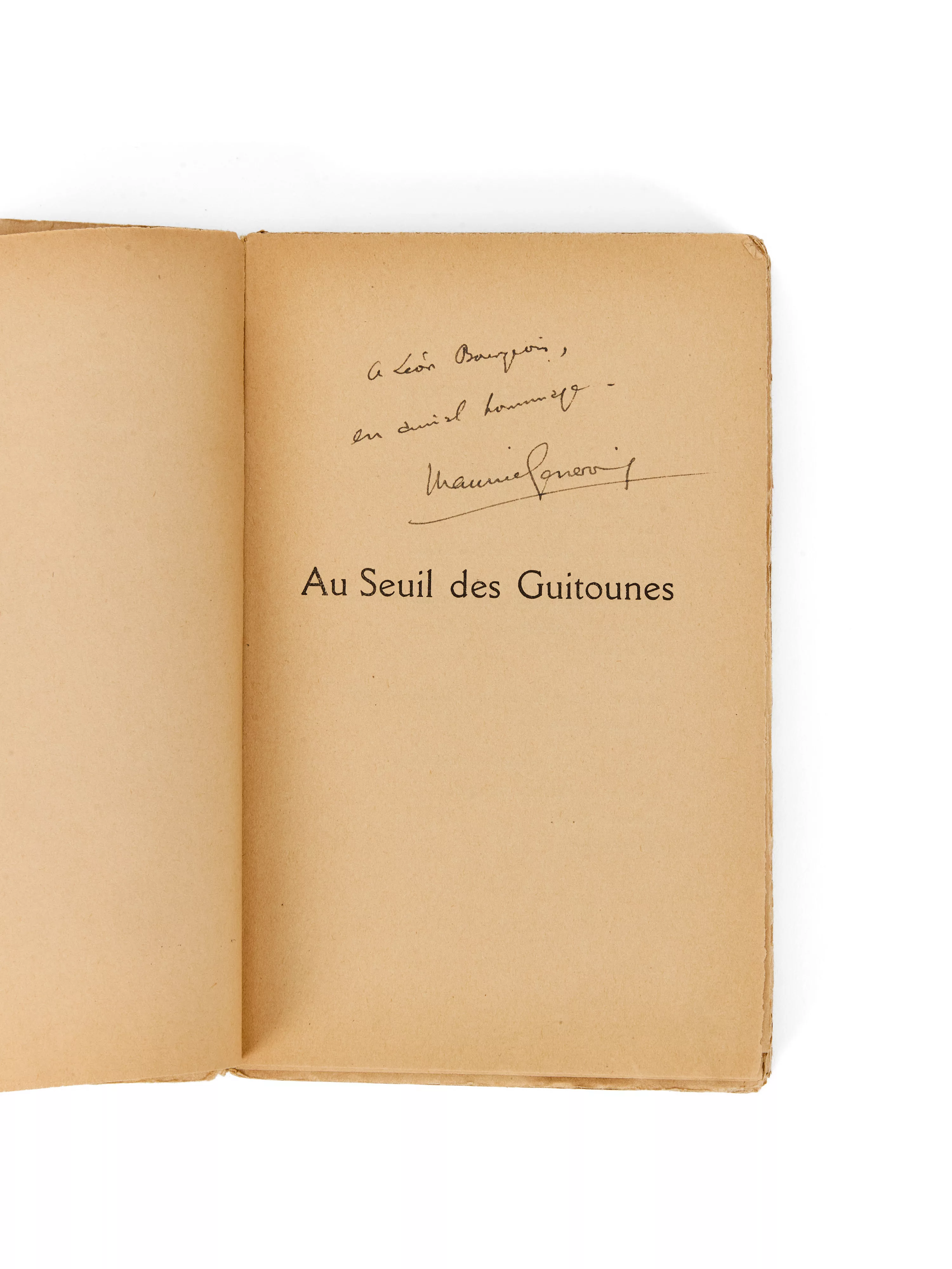 Troisième des récits de guerre de Genevoix, Au seuil des guitounes (le terme de « guitoune », d’origine nord-africaine, est utilisé dans l’argot militaire pour désigner une tente) couvre la période du 20 octobre au 3 novembre 1914, racontée en quinze jours. Il constitue la suite directe de Sous Verdun et de Nuits de guerre, et en partage les contraintes : le récit, contemporain des faits, ne peut se soustraire à la censure militaire et un passage entier est supprimé, p. 119 : le passage en question dont cet extrait suffit à expliquer le sort qui lui fut réservé : « […] C’est toujours pareil : ceux qui ne savent rien, c’est juste ceux-là qui commandent ». Huit ans après sa parution, le texte est toujours absent et ne sera rétabli qu’à partir de 1928.