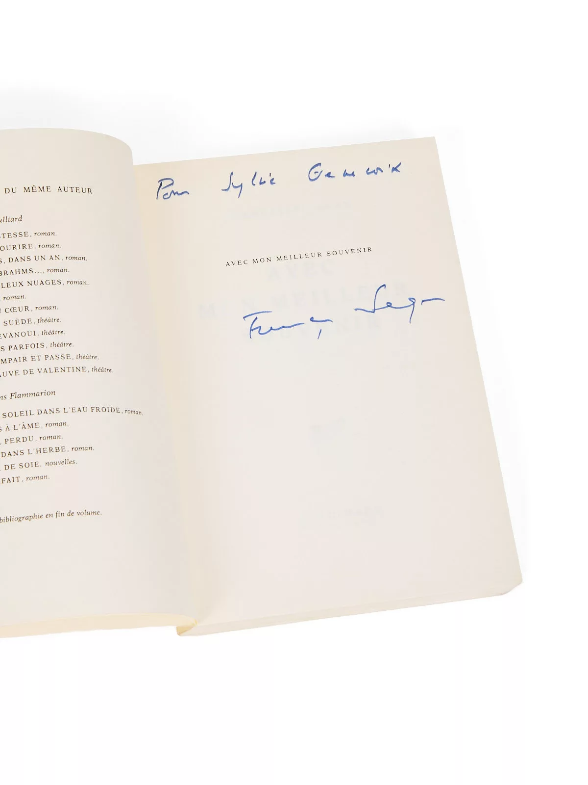 Envoi signé : « Pour Sylvie Genevoix, Françoise Sagan ».