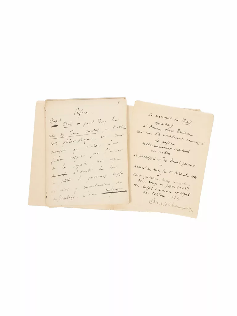On joint l'édition en fac-similé établie sur le manuscrit Louis Barthou de Thaïs. Tirage limité à 142 exemplaires, numérotés et signés par l'éditeur (n° 124) + un exemplaire de la seconde édition de l'Étui de nacre, Calmann-Lévy, 1922.