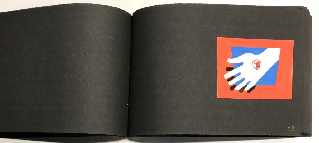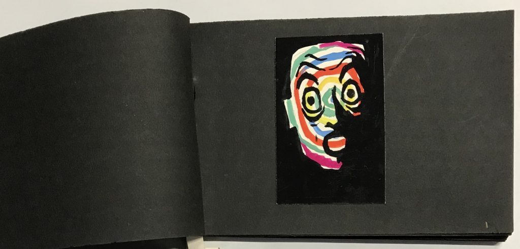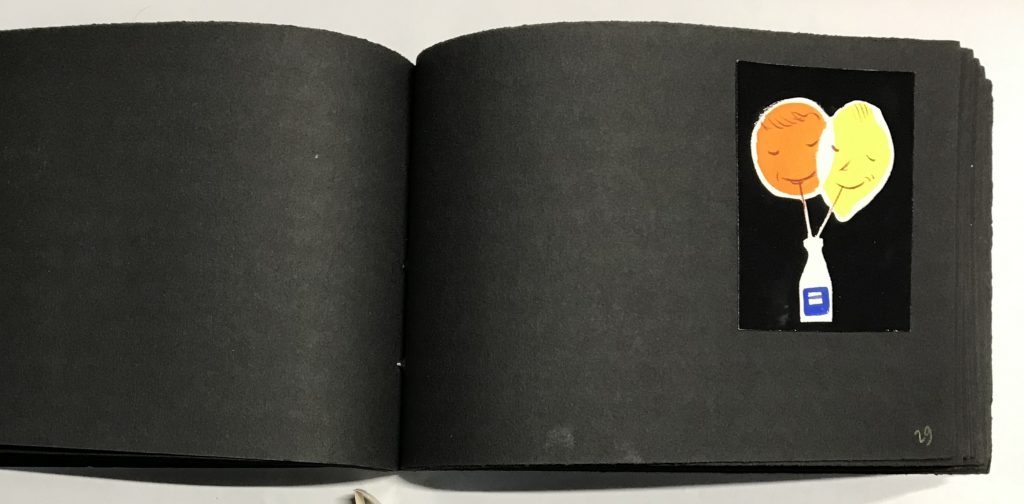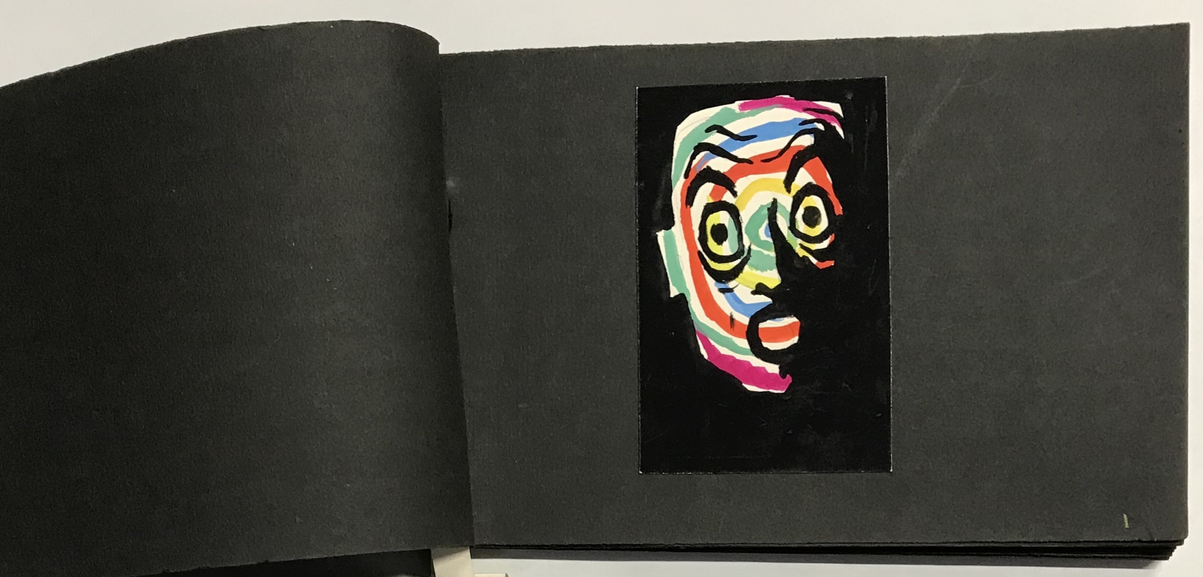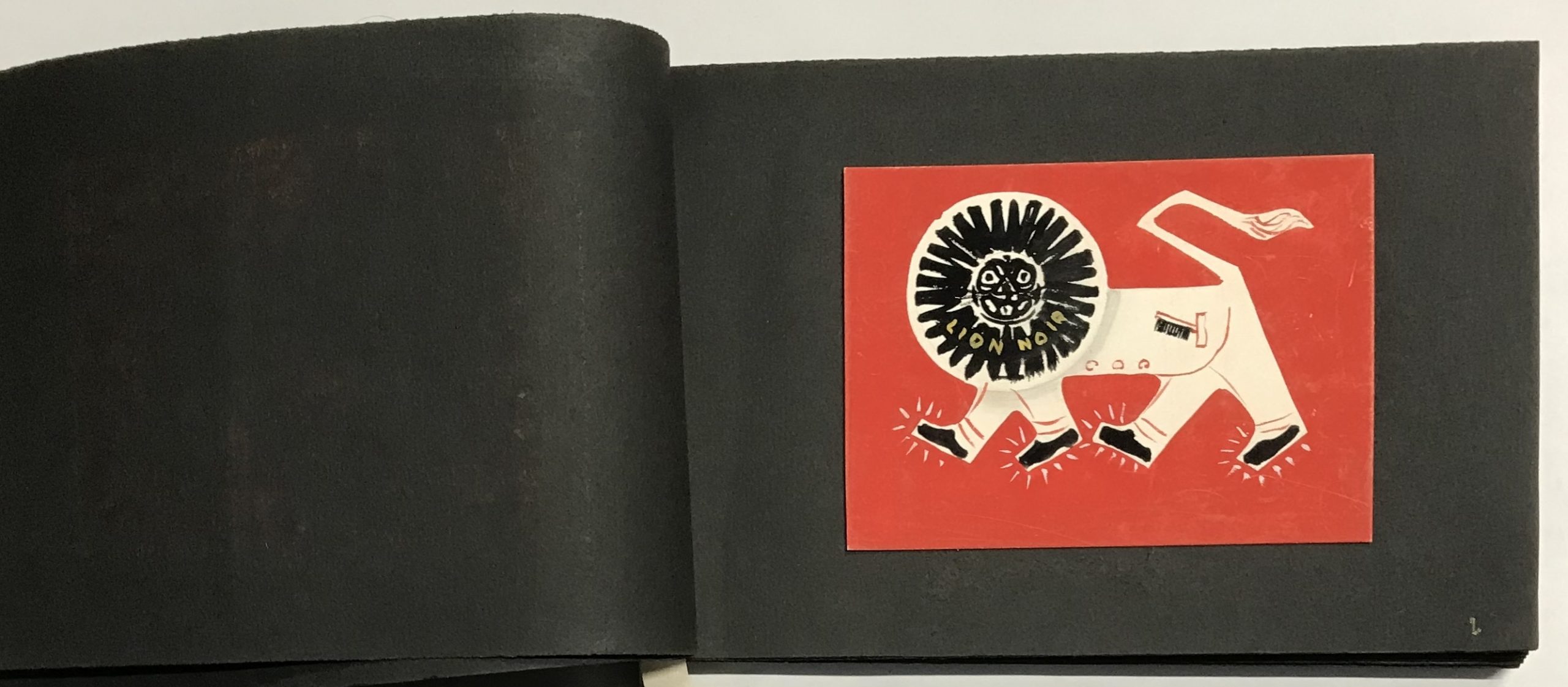 Gouaches sur bristol de formats divers, contrecollées sur canson noir (255 x 170 mm), 47 p. ch., reliées par une cordelette.
