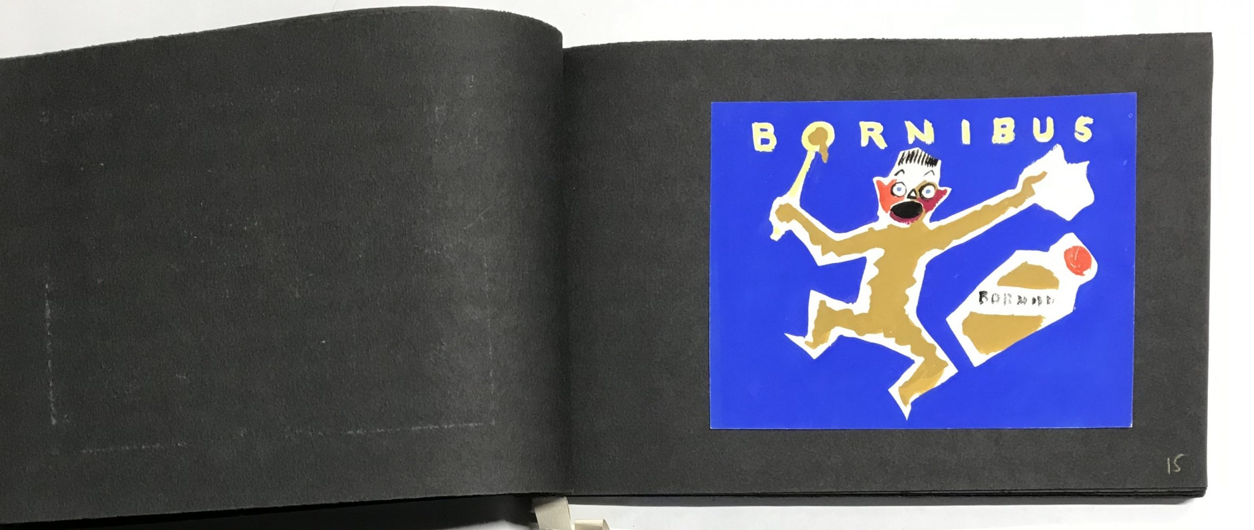 Ce carnet de croquis et maquettes contient de nombreux projets publicitaires : le cirage « Lion noir », la moutarde « Bornibus », les chaussures « André », « Coop », « Dubonnet », « Omo», « Vittel », et d'autres non identifiées. Au total, 51 compositions, uniques et originales.