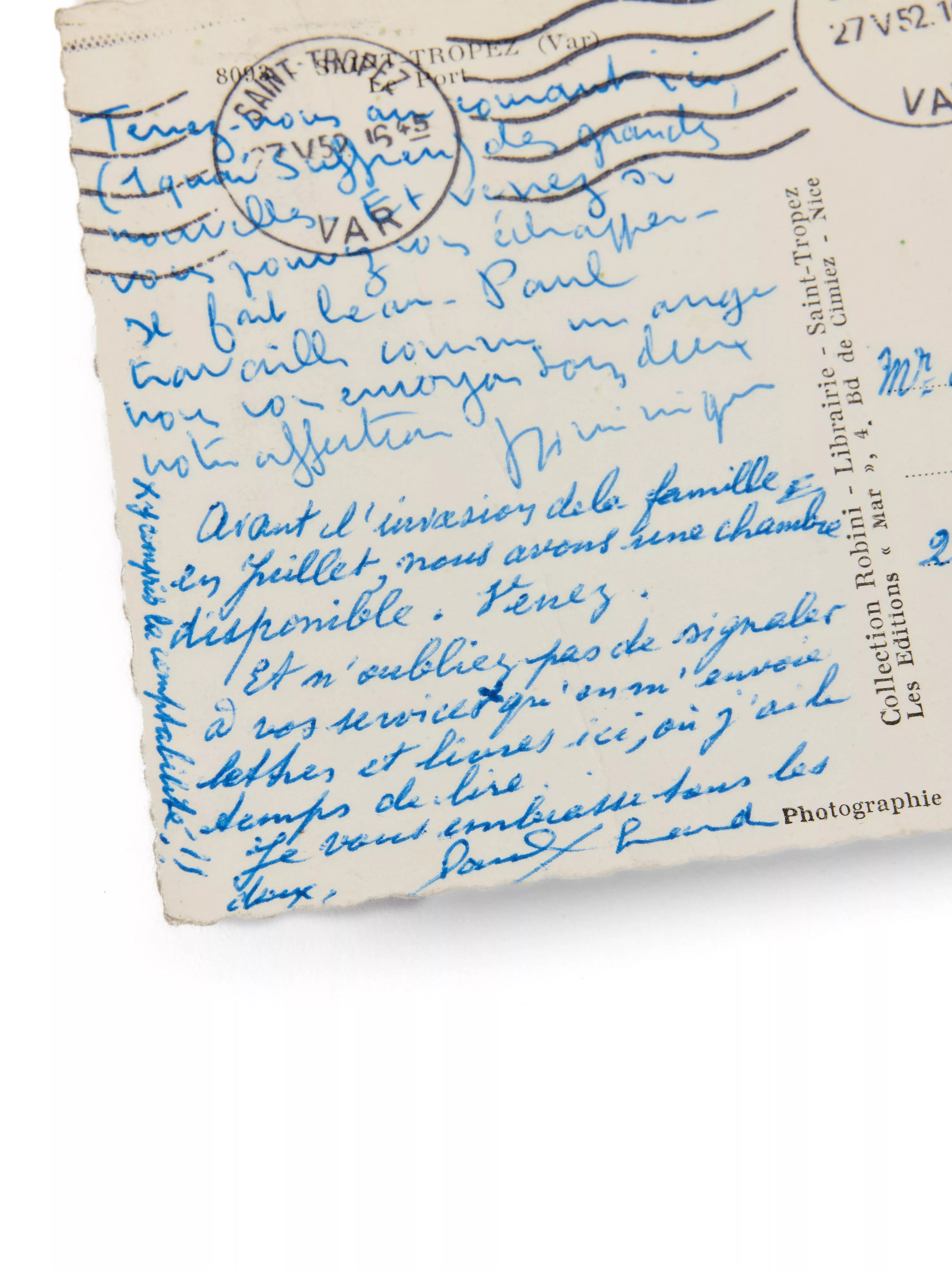 La carte postale adressée à Pierre Seghers est signée par Paul Éluard.
