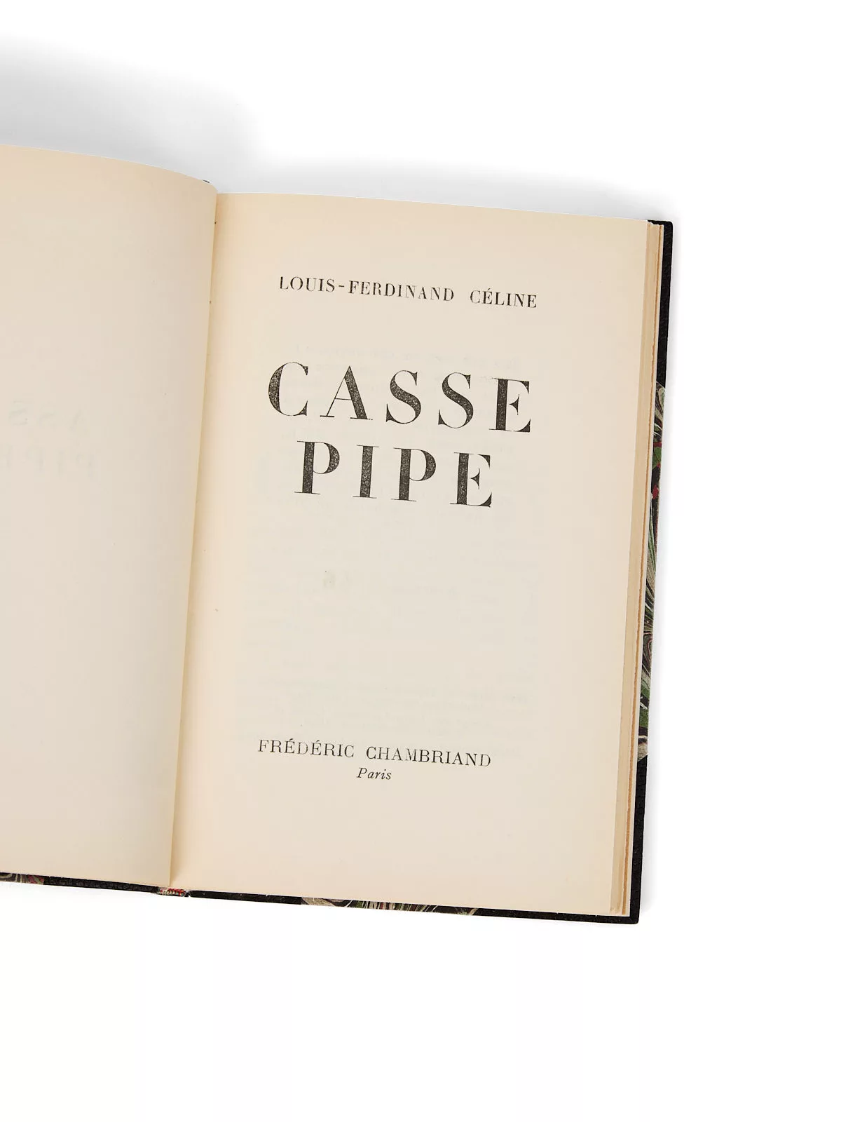 Commencé dès 1936 comme la suite de Mort à crédit, Casse-pipe devait constituer le troisième volet d’une vaste fresque autobiographique inaugurée avec Voyage au bout de la nuit. Le manuscrit, longtemps considéré comme perdu après la Libération, fut partiellement retrouvé et publié en décembre 1949 par les éditions Chambriand, alors que Céline vivait en exil au Danemark. Ce fragment d’environ 150 pages, qui évoque la vie militaire du jeune Bardamu dans un régiment de dragons à la veille de la Grande Guerre, donne à voir l’absurdité de la caserne et la brutalité des hiérarchies, transfigurées par le style célinien : langue syncopée, gouaille populaire et éclats de verve. Le roman devait être l’immense fresque de l’avant-guerre, miroir de la société française sur le point de basculer, mais resta tronqué dans cette première publication.