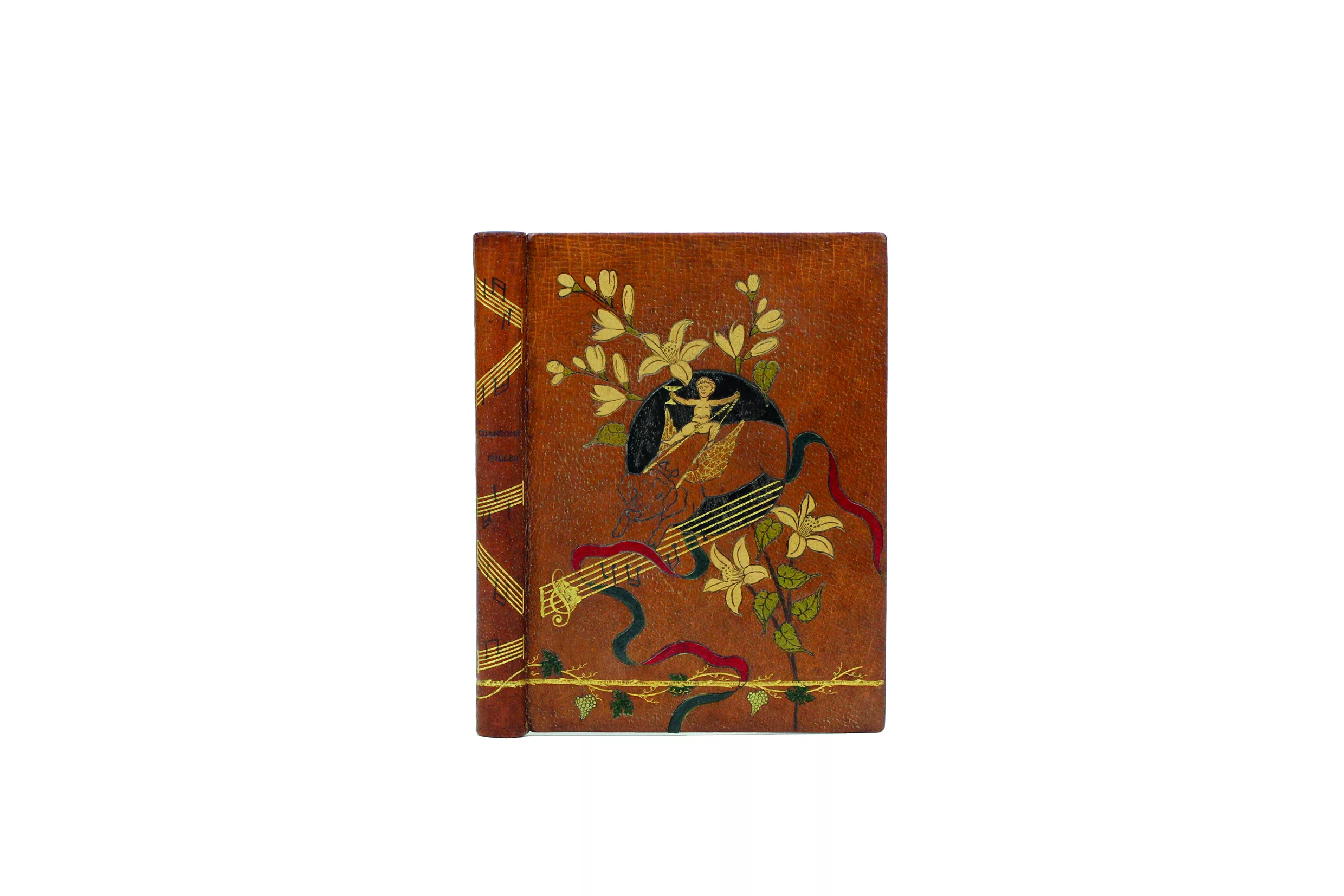 1 vol. (140 x 185 mm) de [2] f. et 132 p. Peau de truie havane, riche décor mosaïqué sur les plats, dos lisse orné d'un motif reprenant le décor des plats, titre à froid tête dorée, contreplats ornés d'un double filet doré et de deux fers en tête de chat aux angles, chemise et étui bordés (reliure signée de Charles Meunier).