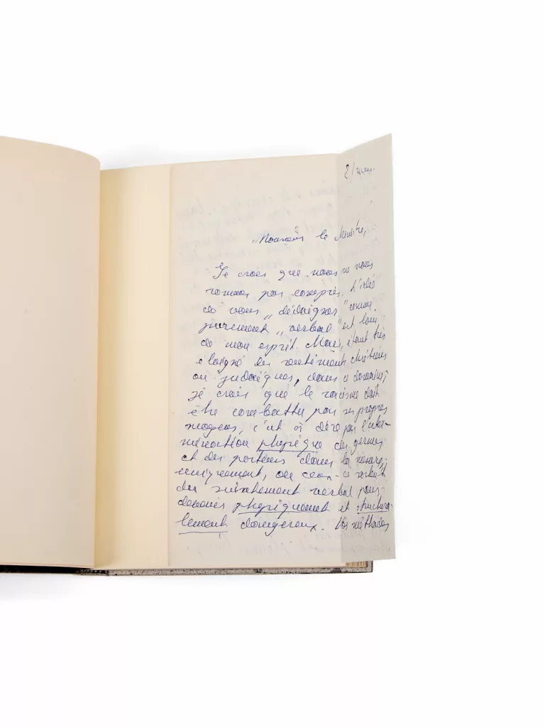 C’est précisément à la sortie de cet enregistrement à la maison de la Radio qu’il croise Jules Moch, qui prend ce jour-là sa suite dans le studio afin de parler de la sortie de son livre, consacré à la figure de Léon Blum. Les deux hommes, très probablement, auront alors un échange qu’ils poursuivront par voie de lettres sur le sujet du racisme, et de son traitement politique ; cette mise au point de Gary en marque, sans nul doute, le point final. Une lettre dont on comprend aisément pourquoi Gary souhaite lui voir conserver un caractère confidentiel.