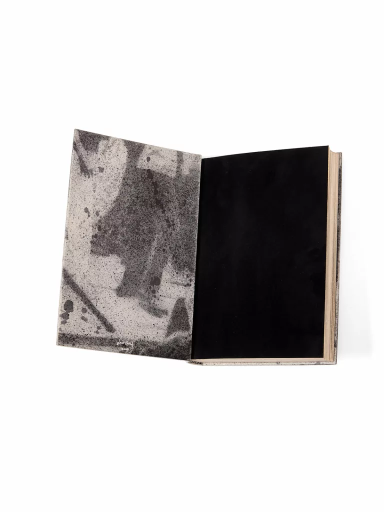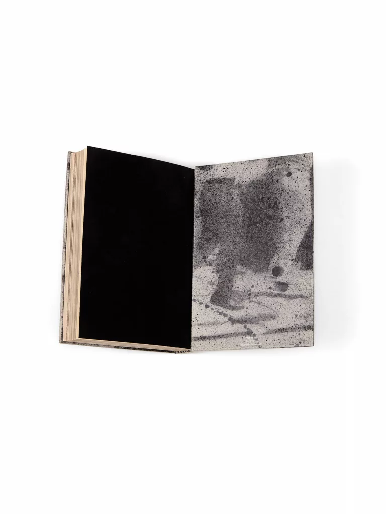1 vol. (135 x 205 mm) de 253 p. et [1] f. Veau naturel orné d'un décor par impression UV composé d'une image inspirée d'une photographie, réhaussé de projections de teinture noire, titre à la chinoise à l'œser crème, contreplats bord-à-bord du même décor, gardes de chèvre velours noire, tranches dorées à l'or blanc par Jean-Luc Bongrain, chemise et étui bordés (reliure signée de Louise Bescond - titr. Claude Ribal, 2025).