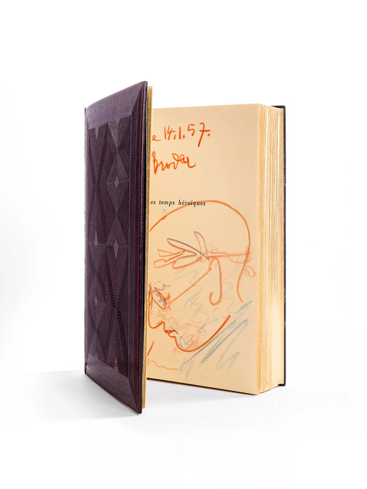 En 1956, Picasso collabore à pas moins de dix livres, pour lesquels il donne une ou plusieurs illustrations originales. Des dessins originaux orneront ainsi les couvertures du catalogue raisonné Mourlot, Picasso lithographe III (Monte-Carlo, André Sauret) et celles de deux expositions personnelles : Picasso (Cannes, Galerie 65) et Picasso dessins d’un demi-siècle (Paris, Berggruen & Cie). Pour un autre type de livres, Picasso illustre le texte de Roch Grey, Chevaux de minuit, paru chez Iliazd, celui de René Crevel, Nuit, paru chez PAB, ainsi que deux ouvrages d’hommage pour trois de ses plus proches amis : Cocteau, Témoignage, chez Pierre Bertrand ; Éluard, Un poème dans chaque livre, chez Louis Broder et cette Chronique des temps héroïques, point final de trente ans d’amitié avec Max Jacob.