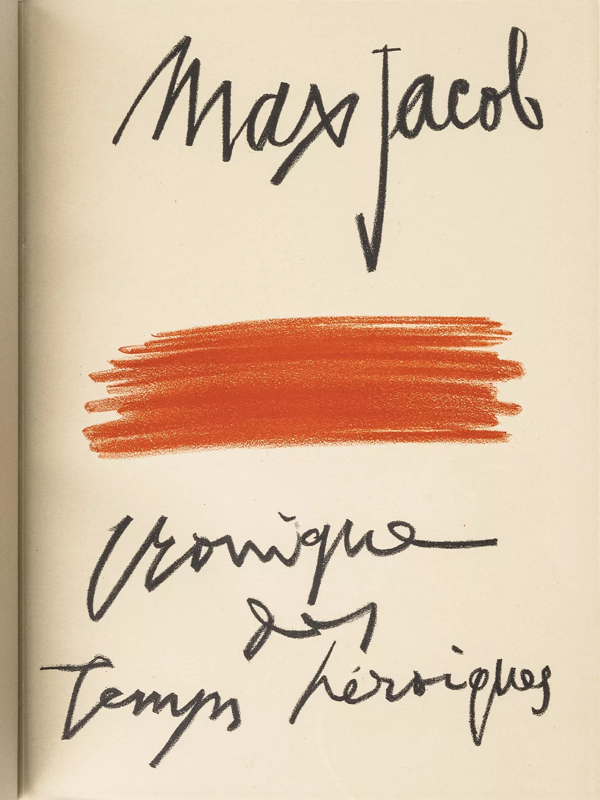 « Le projet deviendra ce récit fondamental sur le cubisme : La chronique des temps héroïques, commencée en 1935 dont seul le début parut du vivant de Max Jacob, en 1937. C’est en 1956 que Louis Broder en fera cette édition limitée, à l’occasion du quatre-vingtième anniversaire de la naissance du poète, avec des eaux-fortes de Picasso, d’après un manuscrit complet des huit chapitres. Le texte de cette édition n’avait jamais été repris depuis. Il n’existe pourtant pas de témoignage aussi vivant et direct sur l’aventure de l’art moderne, depuis la bohème montmartroise jusqu’aux frasques des années folles. »