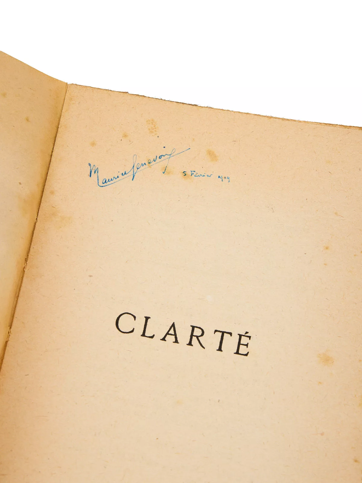 Trois ans après Le Feu, auréolé du Goncourt et encore imprégné des blessures physiques et morales de la guerre, HenriBarbusse publie ce second grand roman militant. Clarté se veut un cri : celui de Simon Paulin, jeune villageois revenu du front changé, réveillé, prêt à crier non plus pour la France mais contre les structures mêmes qui ont permis la guerre.