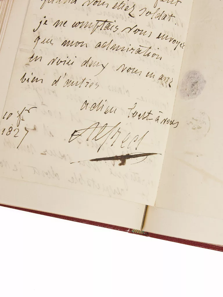 Vigny, qui suit en 1820 une carrière militaire, n’a alors rien publié, tandis que Hugo est déjà célèbre. En décembre, Le Conservateur littéraire, fondé par les frères Hugo, va publier ses premiers textes. La première des lettres de notre recueil contient la lettre princeps de leur échange, celle que Vigny envoie à Hugo le 22 octobre 1820 et à laquelle Hugo répondra le 31. Il félicite « Monsieur Victor » de son Ode sur la naissance du duc de Bordeaux : « Vous avez fait là un bel ouvrage sur un sujet où l’on marche toujours au bord du vulgaire, et jamais le pied ne vous a glissé ». L’amitié est réelle, placée sur le signe des lettres, mais aussi de la fraternité quand survient un drame : « Que vous dire, mon bon ami, sinon que je pleure comme vous ? Je ne sais pourquoi on a créé le mot de consolation, quand la chose n’existe pas. Il n’y en a pas pour ceux qui sentent le malheur tout entier, tout fort comme il est. Vos douleurs de père ont été bien proches de celles de fils et de frère ; vous êtes accablé par les peines de famille, cette assemblée naturelle que l’on croit notre seule source de biens » (octobre 1823, à la mort du premier fils des Hugo).