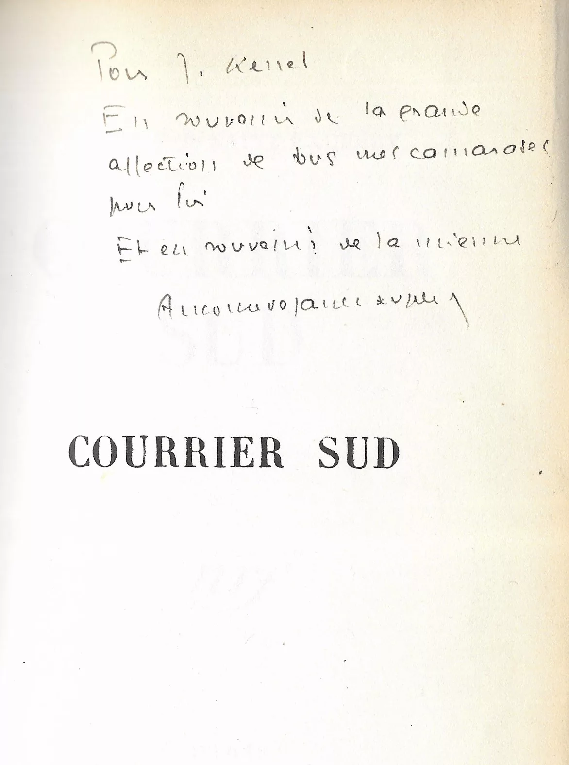 Avant de tenter l’aventure de l’Aéropostale en Amérique du Sud, Saint-Exupéry fut envoyé à l’école de navigation aérienne de Brest pour un cours de perfectionnement. À cette adresse lui parvinrent les premières épreuves de son livre, dont il lut des passages à son cousin Honoré Estiennes d’Orves, son futur lecteur attitré. Il n’y apporta que d’infimes corrections et le bon à tirer fut signé aux premiers jours d’avril 1929.