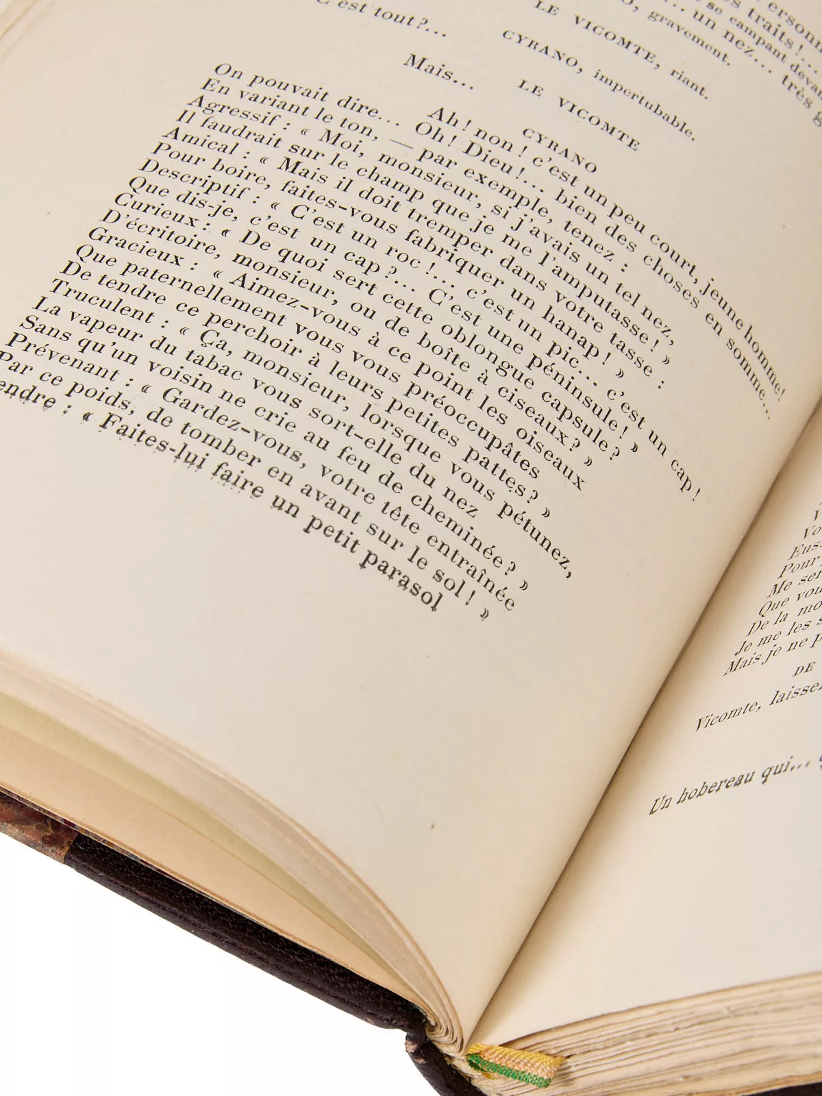 La figure de Cyrano apparut d’abord dans la description toute littéraire qu’en donna Théophile Gautier, dans Les Grotesques (1844) : « En ouvrant le premier volume de Bergerac, où se voit son portrait en taille douce, la dimension gigantesque et la forme singulière de son nez m’ont tellement sauté aux yeux que je m’y suis arrêté plus longtemps que la chose ne valait, et que je me suis laissé aller à ces profondes réflexions : […] il forme, sur le milieu, une montagne qui me paraît devoir être, après l’Hymalaya, la plus haute montagne du monde ; puis il se précipite vers la bouche, qu’il obombre largement, comme une trompe de tapir ou un rostre d’oiseau de proie ; tout à fait à l’extrémité, il est séparé en deux portions par un filet assez semblable, quoique plus prononcé, au sillon qui coupe la lèvre de cerise d’Anne d’Autriche, la blanche reine aux longues mains d’ivoire. Cela fait comme deux nez distincts dans une même face, ce qui est trop pour la coutume. » Rostand, c’est certain, aura apprécié !