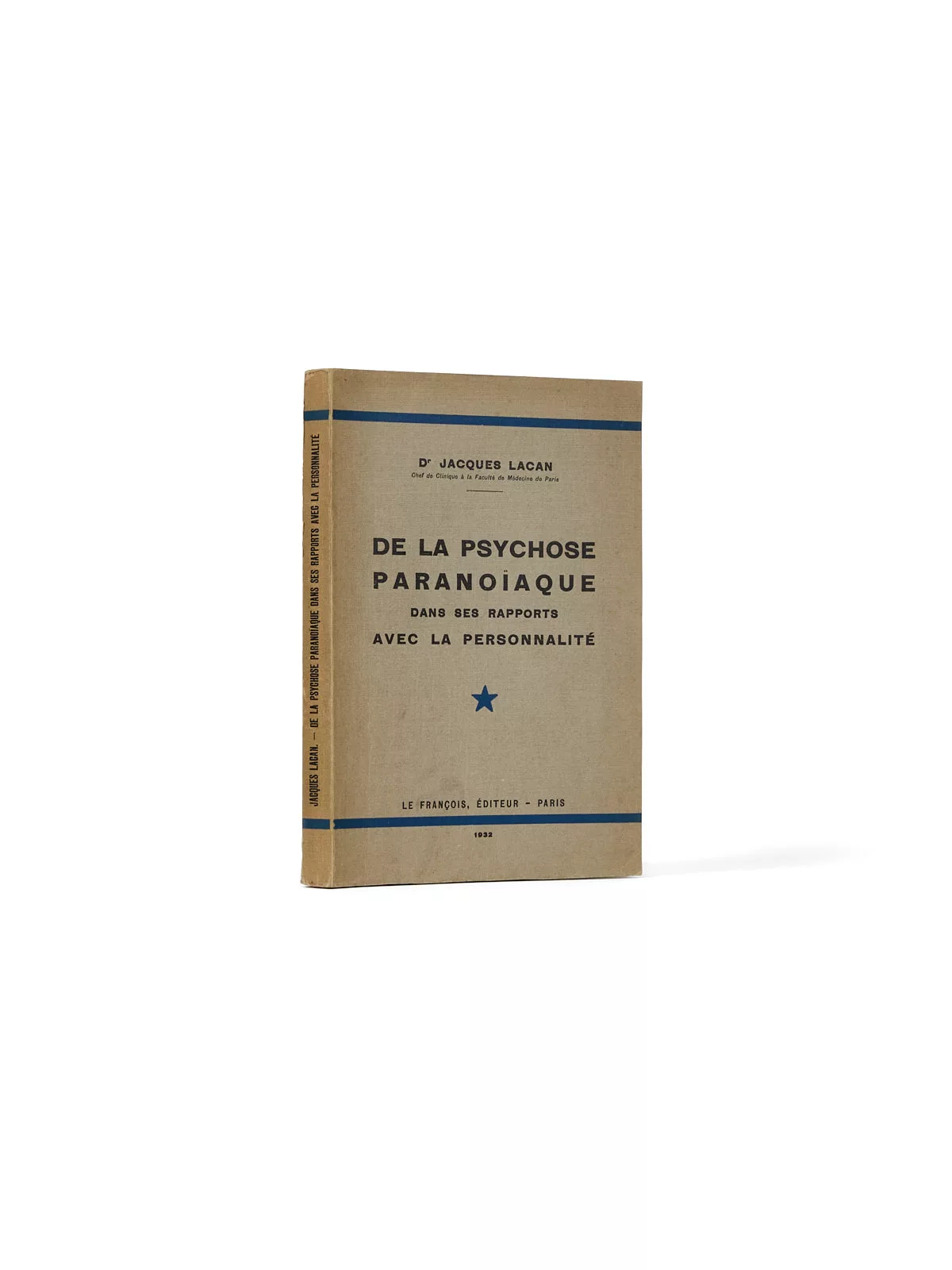 L’édition chez Le François de la thèse existe sous deux formes, presque identiques et avec un achevé d’imprimer commun du 1er octobre 1932 : l’ensemble de l’édition est imprimé avant la soutenance, qui aura lieu au début du mois de novembre, avec Henri Claude comme président du jury. Lacan est alors l’amant de Marie-Thérèse de Bergerot, de quinze ans son aînée, puis d’Olesia Sienkiewicz, deuxième femme de son futur ami Pierre Drieu la Rochelle. La première va dactylographier la thèse, la seconde en financera l’impression, chez l’éditeur scientifique Le François.