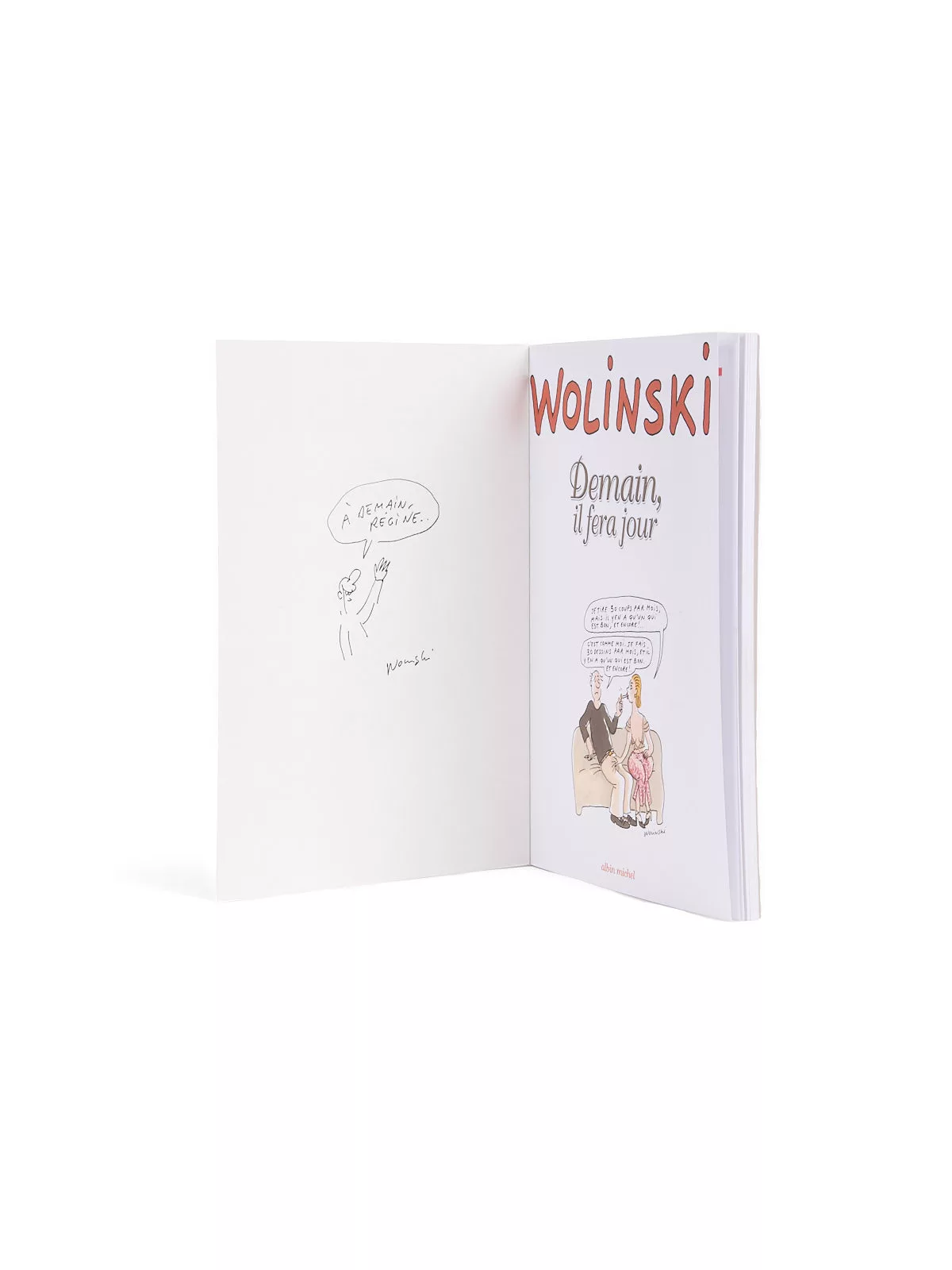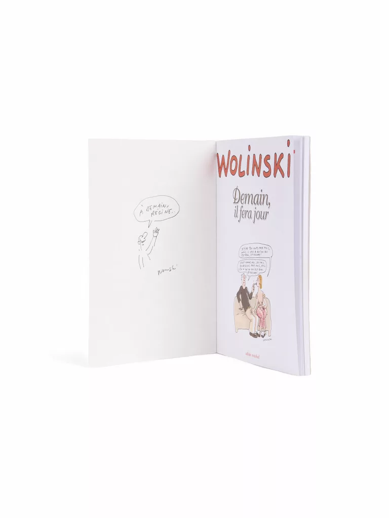 Demain, il fera jour est publié en réaction des attentants du 11 septembre 2001 : dans cet album doux-amer, Wolinski dresse la carte d’un nouvel ordre mondial profondément bouleversé. Le couple, l’amour, la politique, les enjeux sociaux : un tour d’horizon complet qui connaît un grand succès. Neuf mois plus tard, en janvier 2005, Wolinski sera récompensé par le Grand Prix du 32e festival d’Angoulême, qu’il présidera comme le veut la tradition l’année suivante, en 2006, en bénéficiant d’une grande exposition sur son oeuvre au Centre national de la bande dessinée et de l’image.