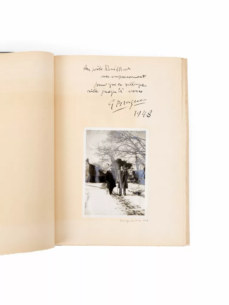 Envoi signé : « Au poëte René Char, avec empressement, pour que ce sillage aille jusqu'à vous. G. Braque 1948 ».
