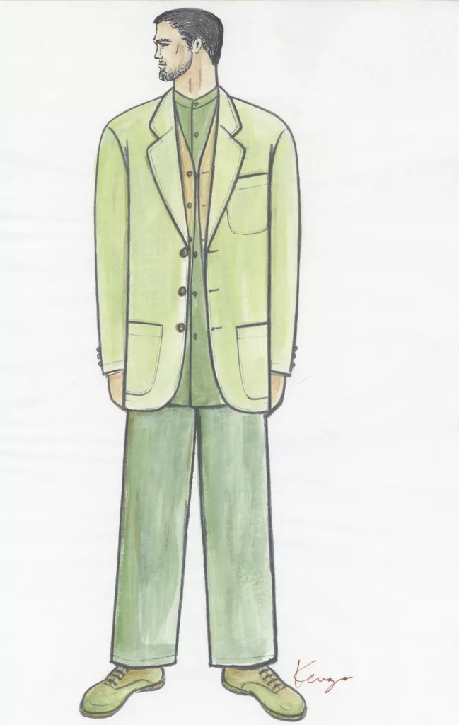 Kenzo Takada, l’un des créateurs de mode les plus extravagants et les plus talentueux du XXe siècle, est né en 1939 dans la ville de Himeji au Japon. Fasciné par les magazines de mode et les images de Paris des films de la Nouvelle vague depuis sa plus tendre enfance, il s’est rendu à Paris en 1964 après que son immeuble a été démoli pour faire place aux Jeux olympiques de Tokyo. En 1970, il ouvre sa première boutique dans la galerie Vivienne, surprenant le public français par son esthétique audacieuse faite de couleurs vives et de motifs contrastés. Inspiré par les créateurs de haute couture émergents de l’époque, comme Yves Saint Laurent et Karl Lagerfeld, Kenzo devient l’un des principaux créateurs de la haute couture à Paris, modifiant les normes et les goûts de la décennie.