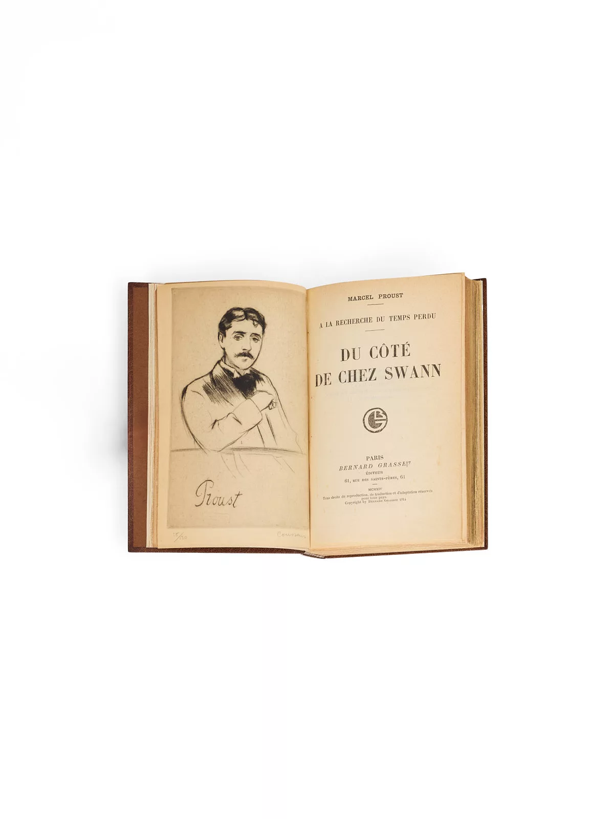 C’est à partir de 1909 que Marcel Proust entre en discussion avec les éditeurs en vue de la publication de sa fresque à venir et trouve en Bernard Grasset un interlocuteur intéressé qui accepte de publier à compte d’auteur la première partie de l’ouvrage : Du côté de chez Swann, où le romancier révèle sa maîtrise de la phrase, mise au service de l’exposition des sentiments et des « intermittences du coeur ». Le petit univers de Combray se livre alors pour la première fois, entamant un des plus remarquables cycles littéraires jamais produits, qui n’invite qu’à une chose, ralentir, prendre le temps, pour voir évoquer avec une précision totale les vêtements, les visages, les couleurs, les parfums, les corps et le temps, en reconstituant l’enveloppe d’un monde dont il sait bien qu’il est jour après jour un peu plus sur la pente de l’imperfection. N’empêche : personne n’aura été si loin dans le portrait, la chair et le souvenir.
