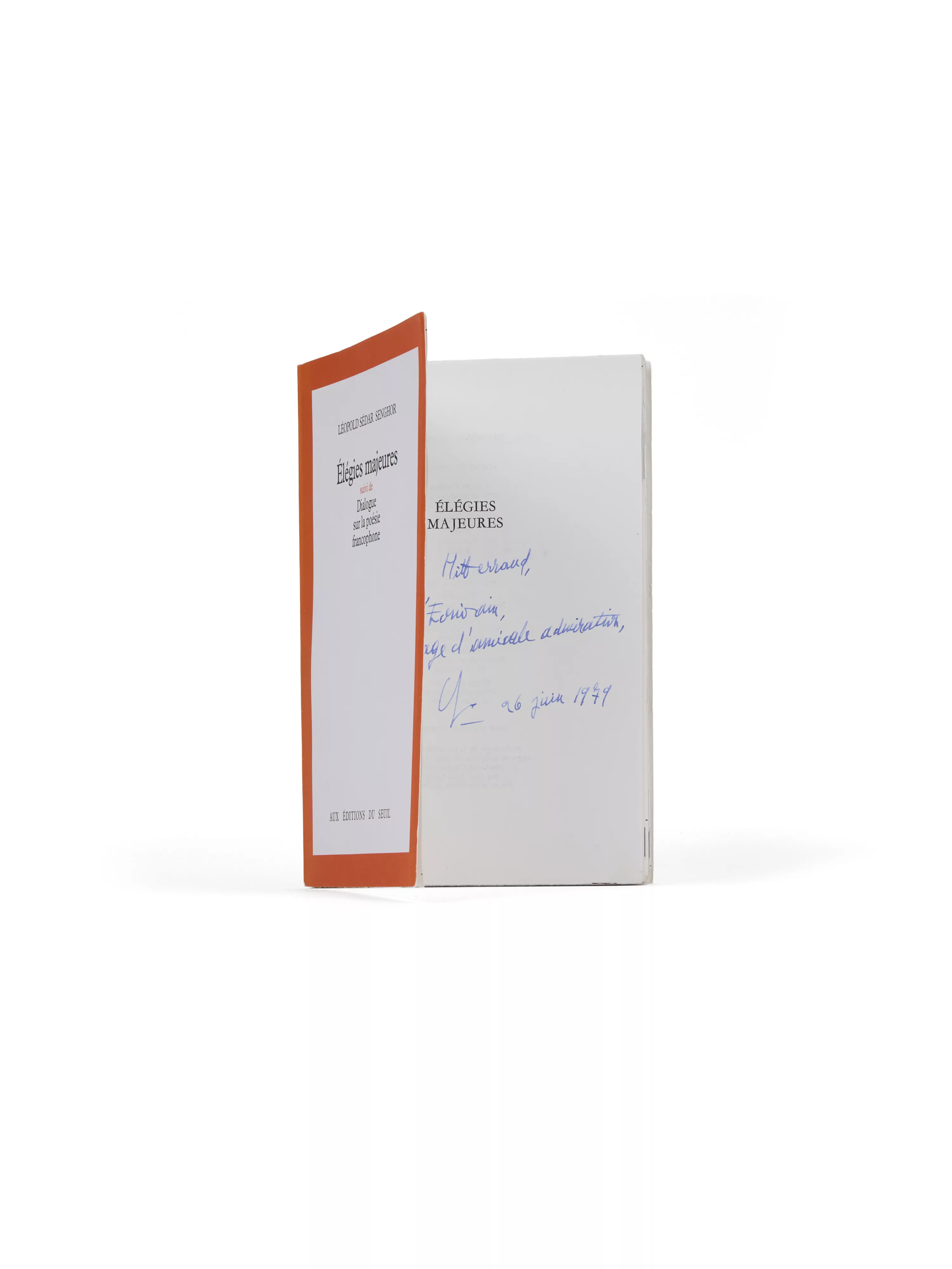 En 1979, lorsqu’il lui offre ces Élégies majeures, François Mitterrand n’est encore que premier secrétaire du parti socialiste (depuis le congrès d’Épinay, en 1971). Et c’est bien l’écrivain Senghor salue. En 1981, au moment où François Mitterrand accède à la plus haute fonction de l’État, le président-poète africain a quitté la vie politique depuis un an. Élu à l’Académie française le 2 juin 1983 au fauteuil du duc de Lévis-Mirepoix, il est reçu sous la Coupole le 29 mars 1984, en présence du Président de la République, François Mitterrand, qui s’y rend pour la première fois ès qualité. Il n’y retournera que deux ans plus tard, pour la célébration du trois cent-cinquantième anniversaire de l’institution.