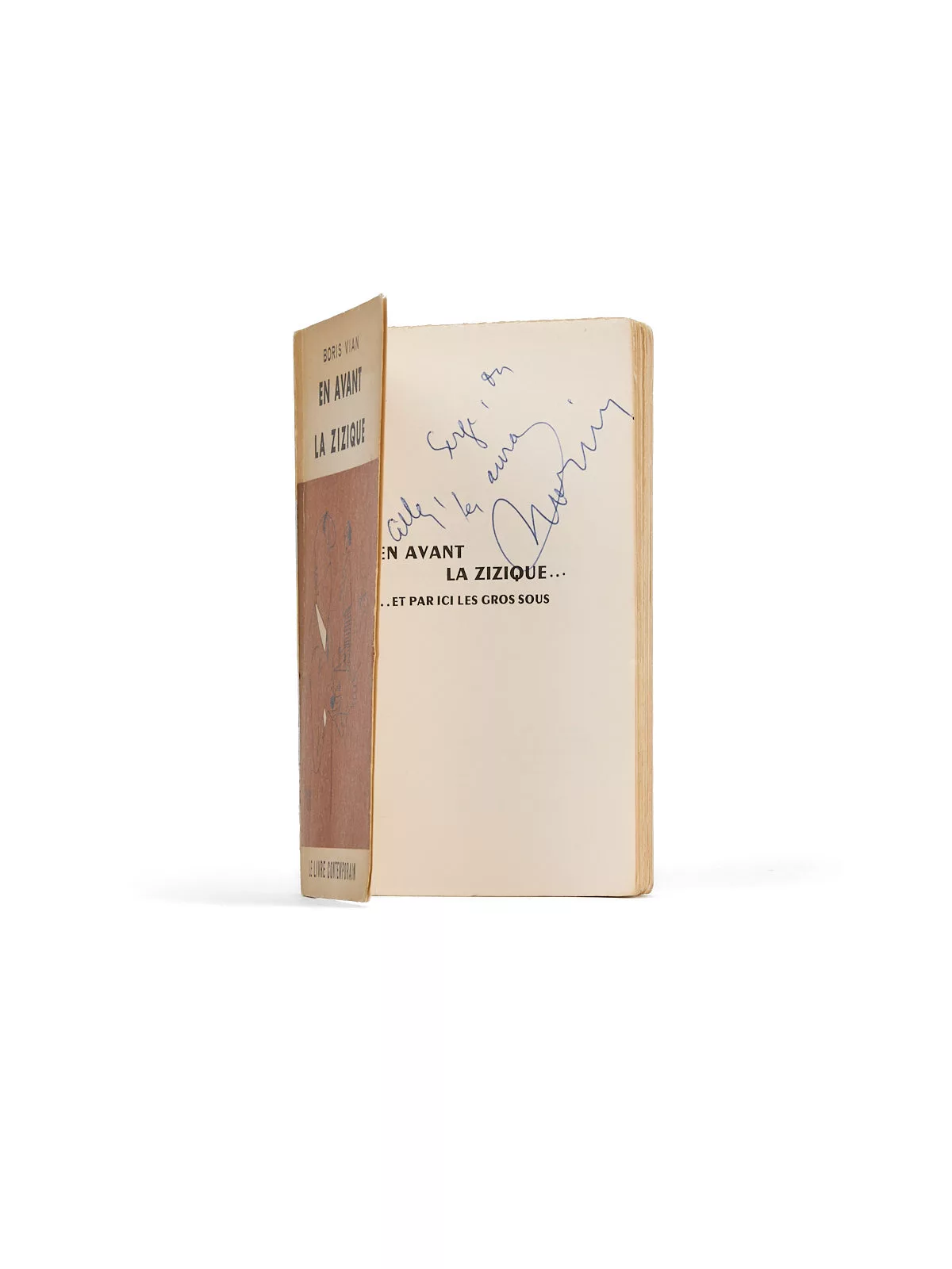 Envoi signé : « Allez, Serge [Gainsbourg], on les aura ! Boris Vian ».