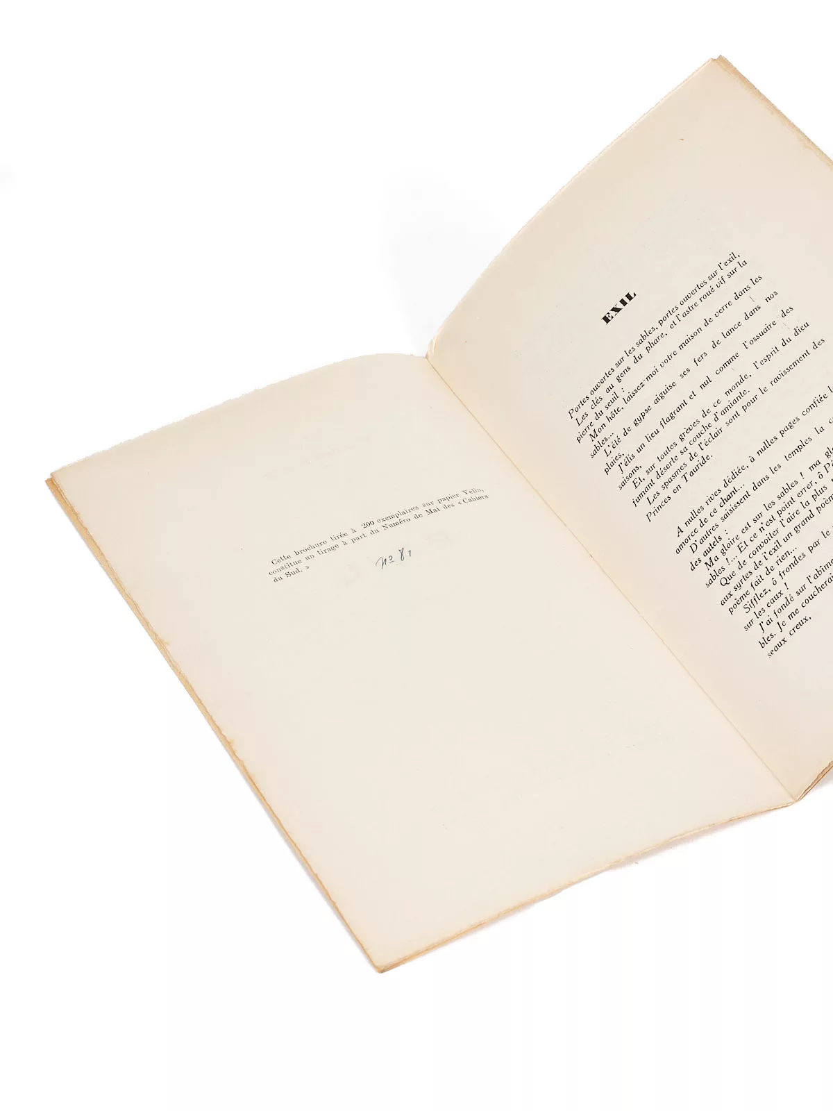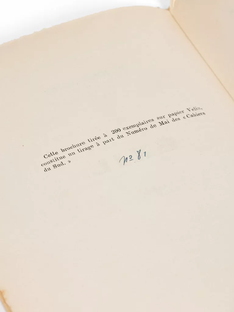 Tiré à part du numéro de mai 1942 des Cahiers du Sud.