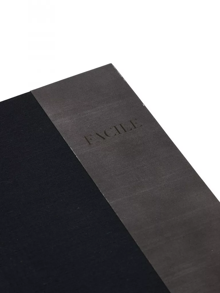 1 vol. (185 x 245 mm) non paginé. Reliure à emboîtage avec plats à bandes de soie noire et de cuir argenté, titre gravé au laser sur le premier plat et gardes en papiers poncés (reliure signée de Tamara Lise).