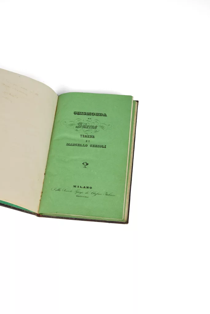 Edition originale de cette pièce "médiévaliste" à connotations politiques : Marcello Cerioli (1812-1862), originaire de Crémone, était un patriote italien de la première heure.