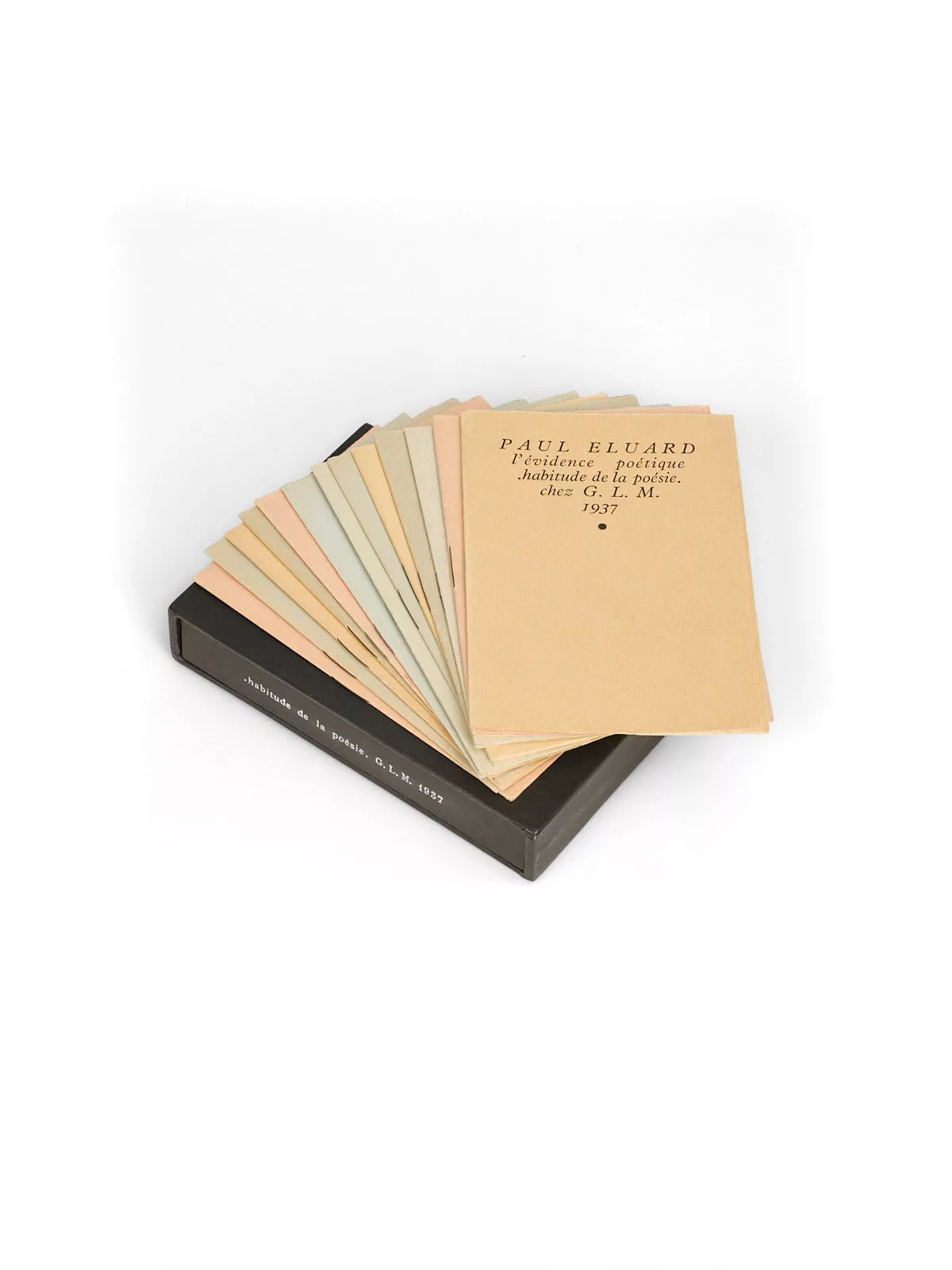 On rencontre souvent cette série recomposée par l’éditeur en deux volumes de 6 fascicules chacun : ce sont des réimpressions, sous couvertures rouges et/ou crème, portant sommaire. Deux titres n’y sont pas inclus, ceux d’Hugnet et de Michaux, qui ne peuvent être présents que dans les séries de premier tirage. Chaque titre est imprimé sur un papier de couleur différente.