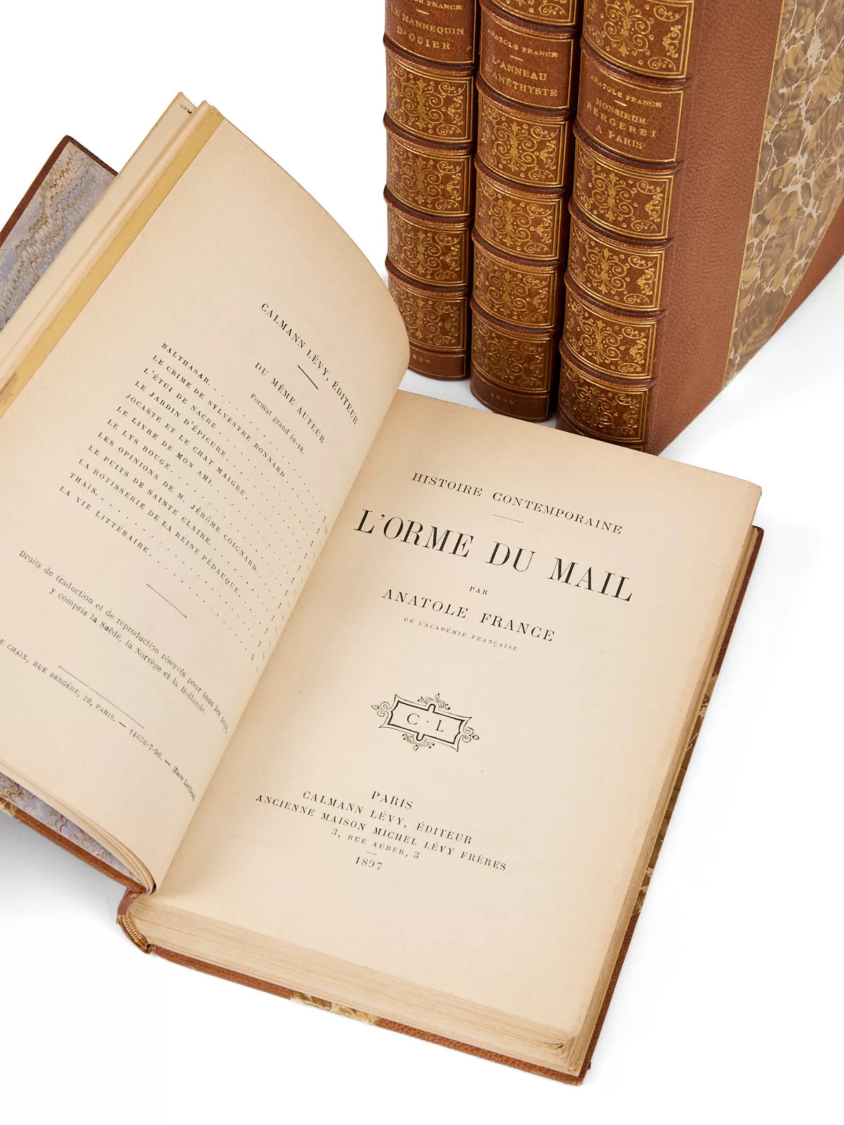 Arrivé à la maturité, reconnu après les succès de Thaïs et de sa Reine Pédauque, Anatole France cherche à renouveler sa manière, laisse le manuscrit de la Vie de Jeanne d’Arc de côté et menant une existence mondaine « imagine une suite de romans d’un genre nouveau ». L’Orme du mail suivi par Le Mannequin d’osier, l’Anneau d’amétyste et Monsieur Bergeret à Paris vont prendre place dans la série de son Histoire contemporaine, « large tableau, d’un réalisme puissant ».